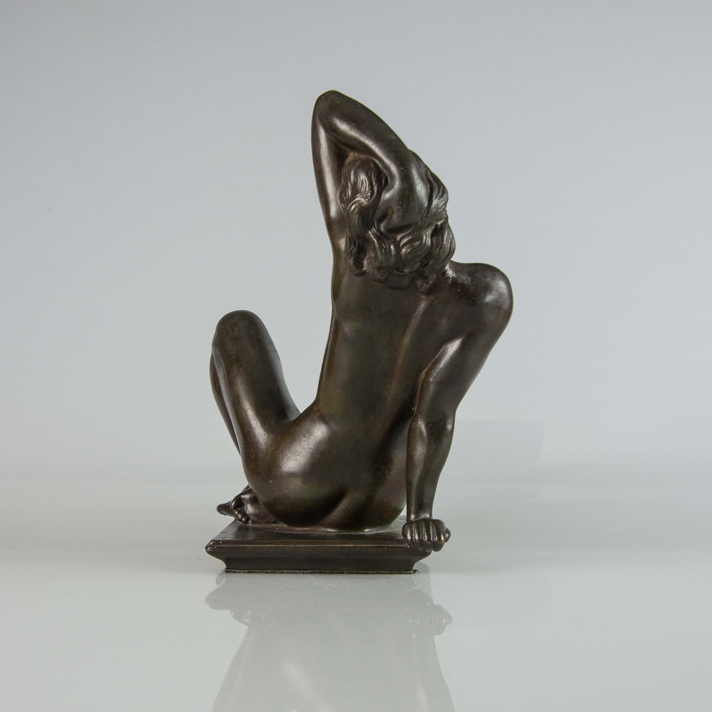 Figur i bronze med motiv af siddende nøgen kvinde
