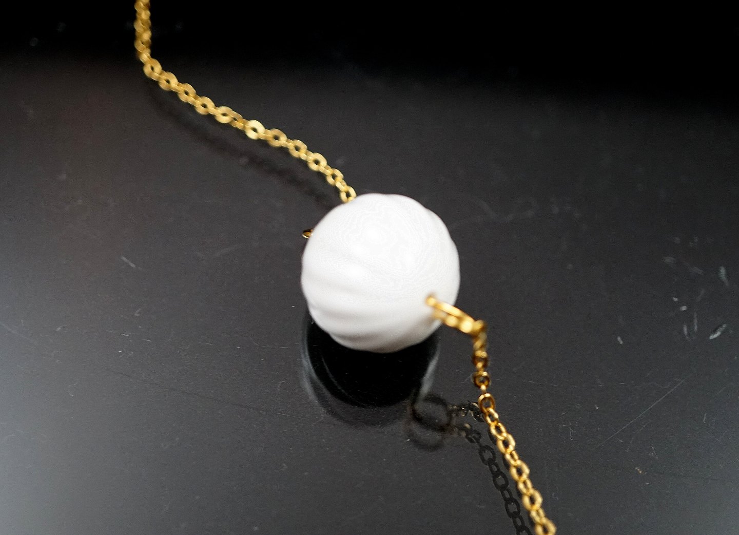 Royal Copenhagen. Flagranke med hvide porcelæns kugler og vævet Dannebrogs flag. Kæden er 24 karat forgyldt. Kæden er i original æske