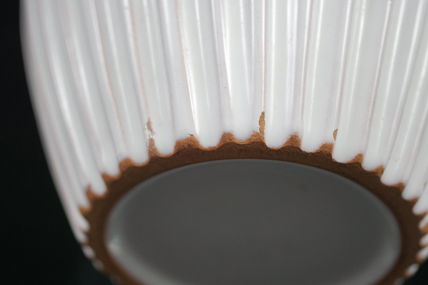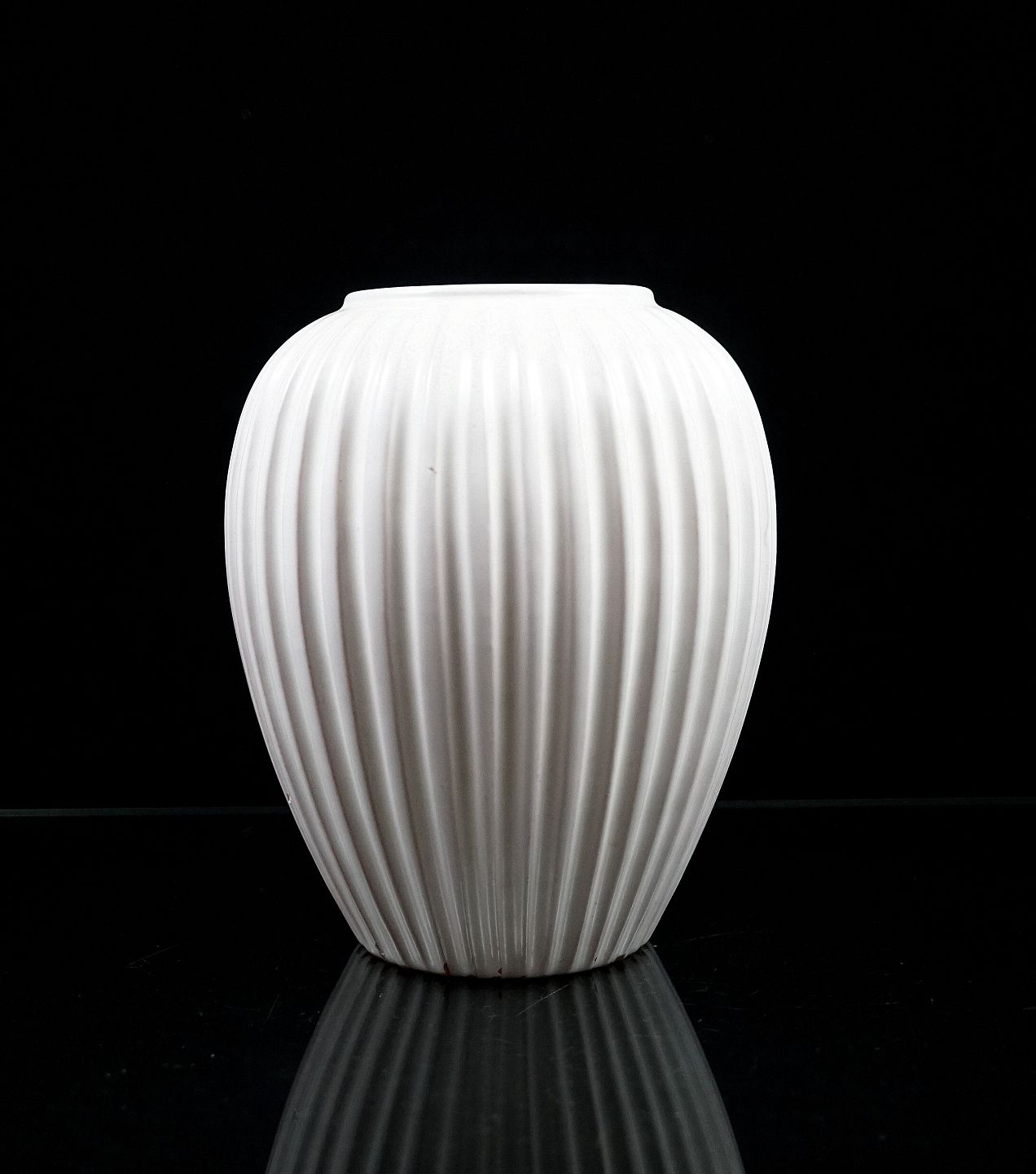 Eslau Design, formentlig Riflet vase, nr. 11/1. Vasen er riflet og hvidglaseret.