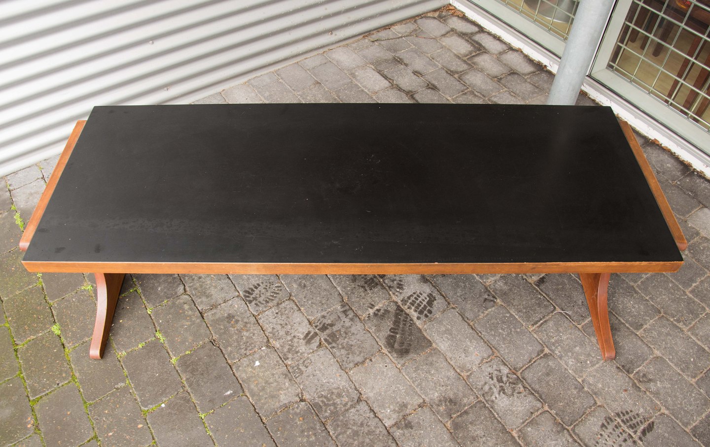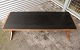 Aflangt sofabord i teaktræ med vendbar topplade i teak og sort formica