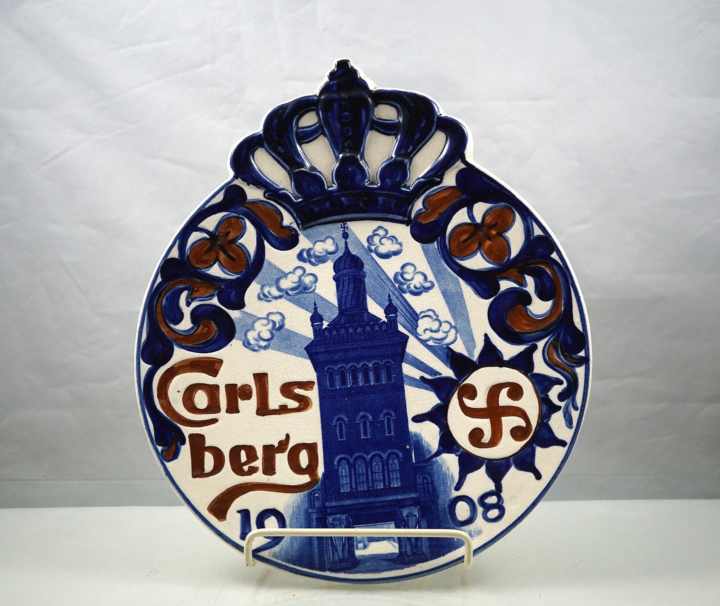 Aluminia. Bryggeriplatte, Carlsberg årgangsplatte 1908, platten er med krone og malteserkors. Krakkeleringer ellers fin stand