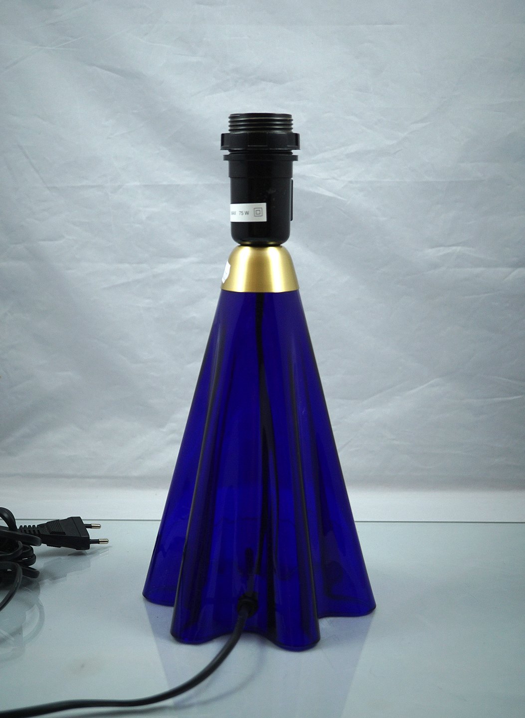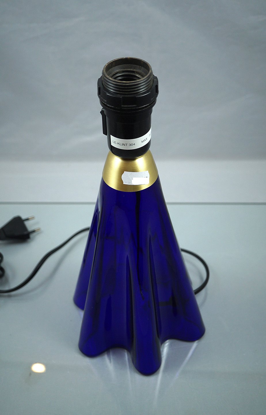 LeKlint. Bordlampe nr. 304. Lampefoden er af transparent blåt, foldet glas.