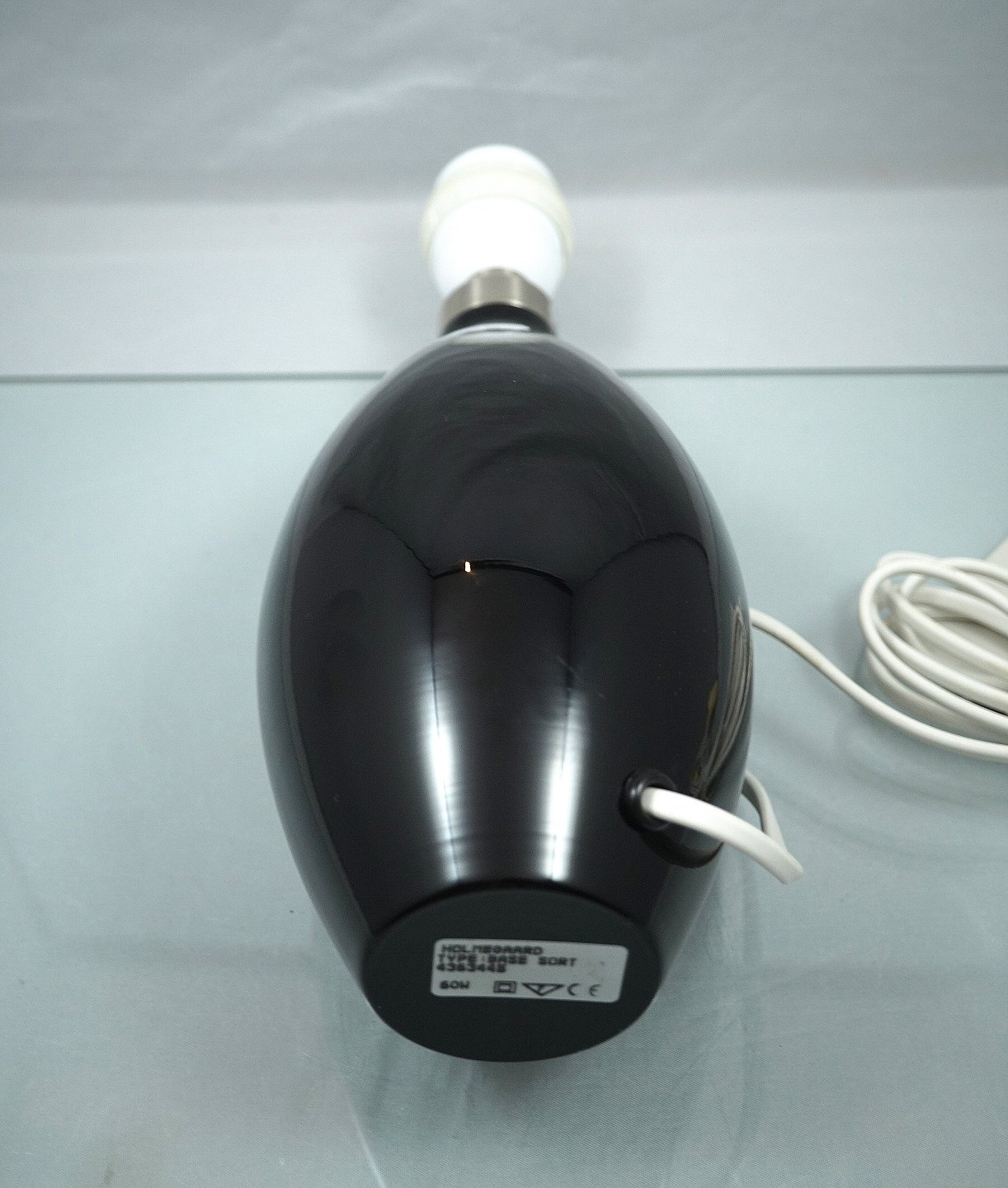 Holmegaard Glasværk. Bordlampe nr. 1825. Base/Cocoon bordlampe af sort opalglas med klart overfang. Vase kommer i original kasse