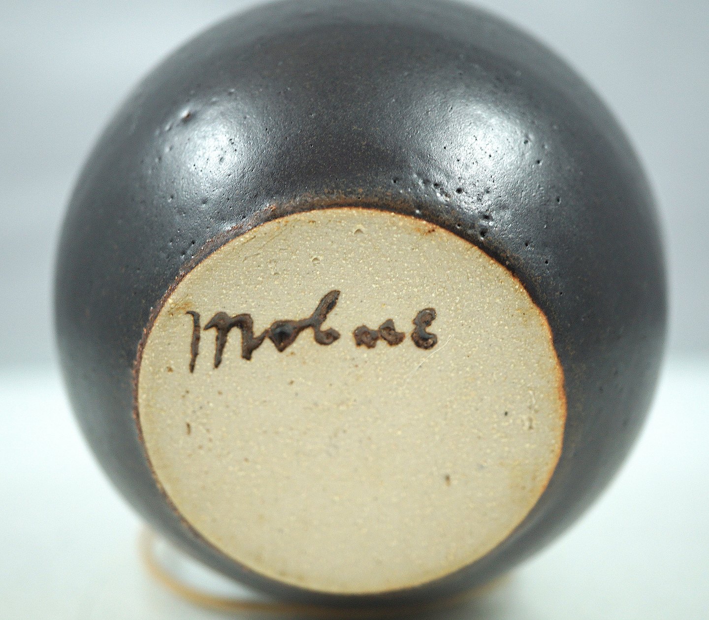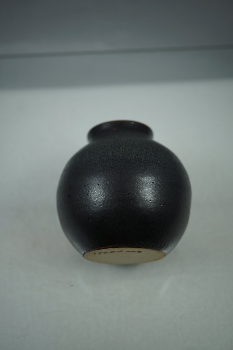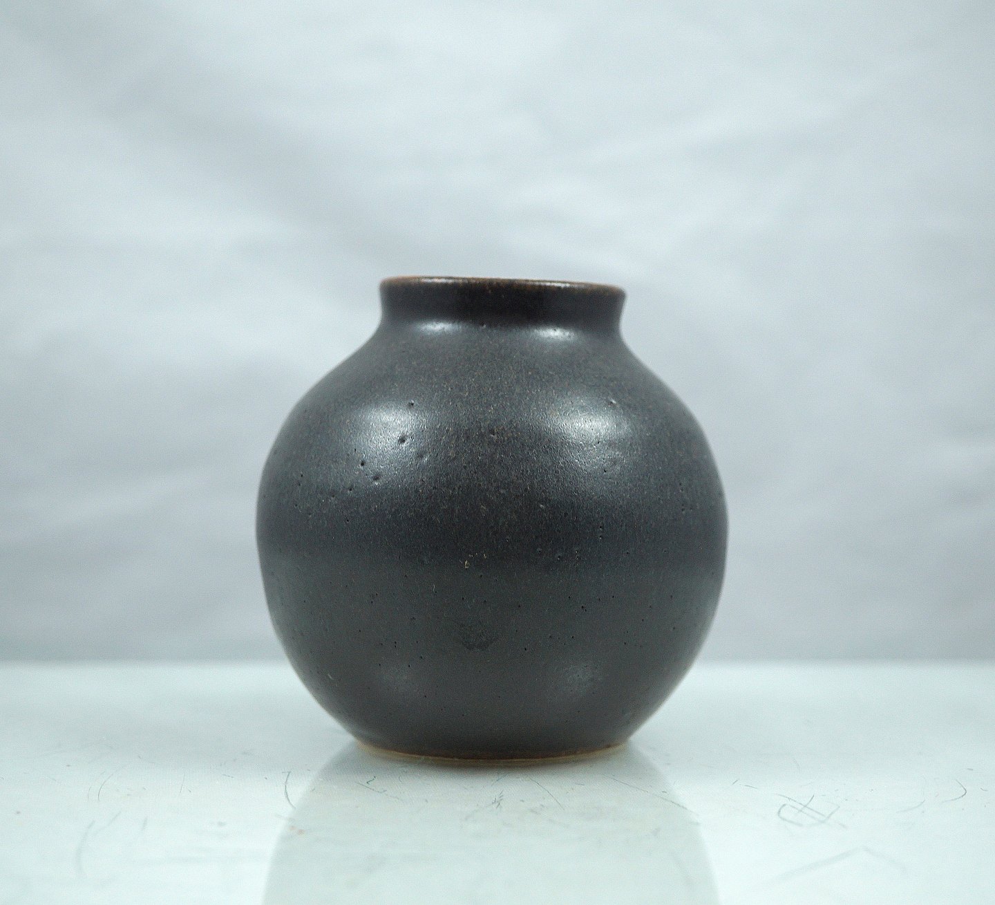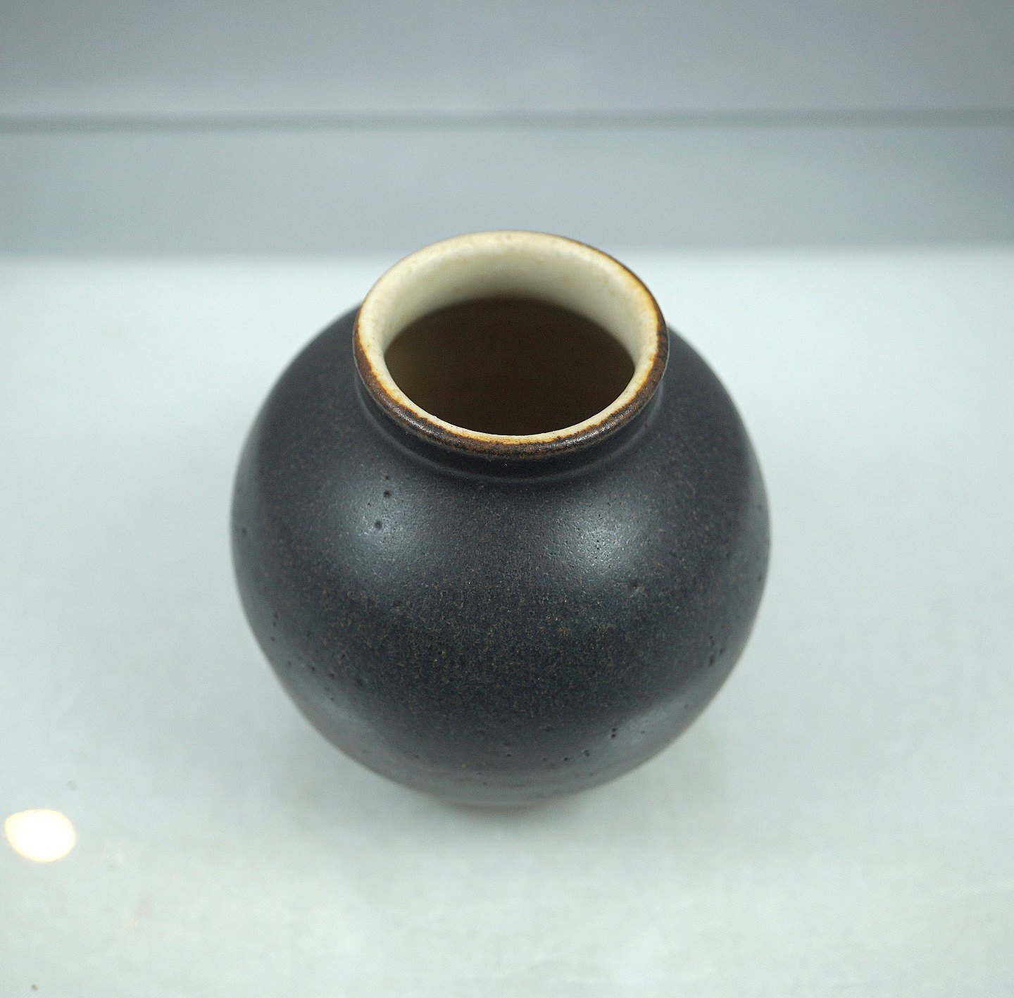 Sort glaseret krukke, der er hvid glaseret indvendig