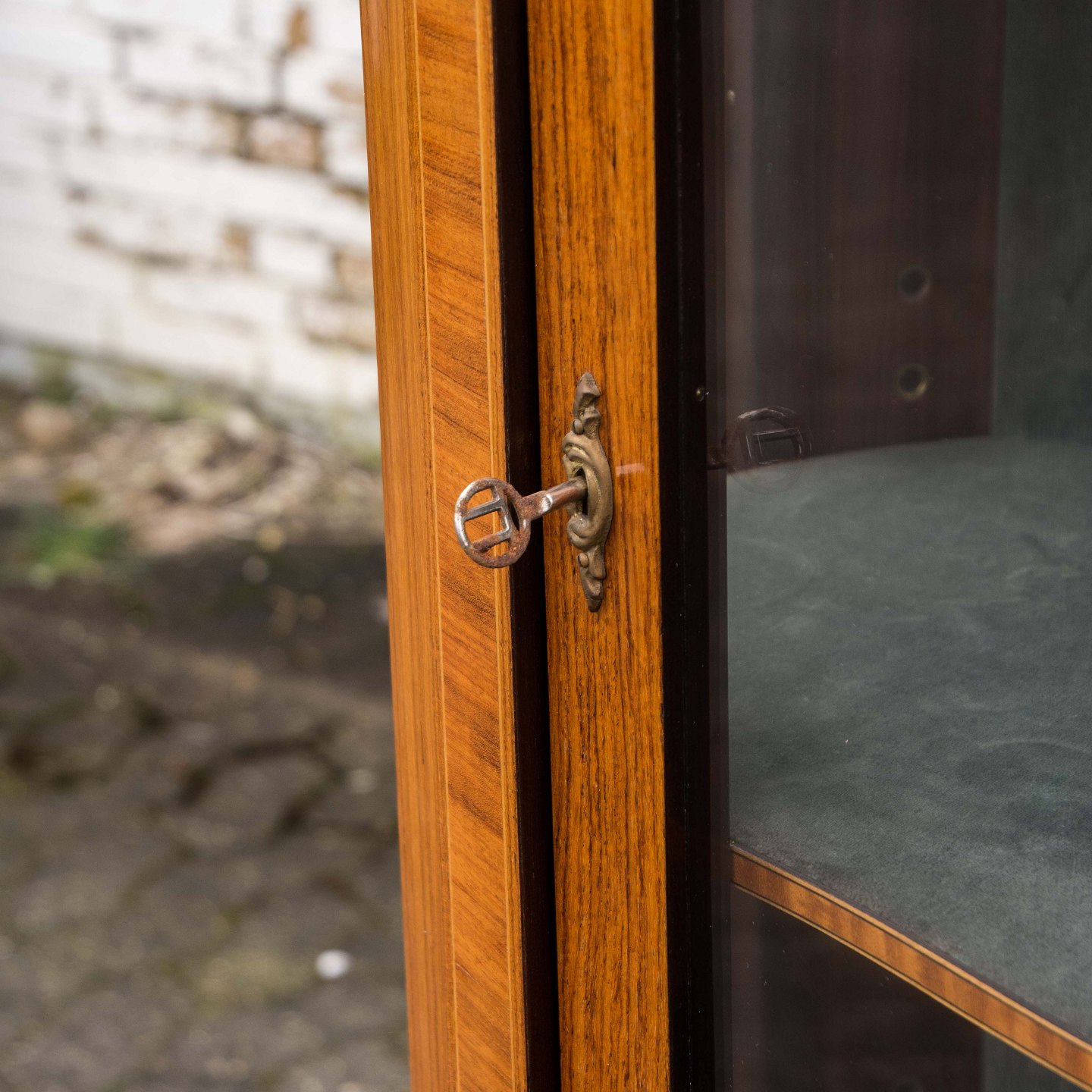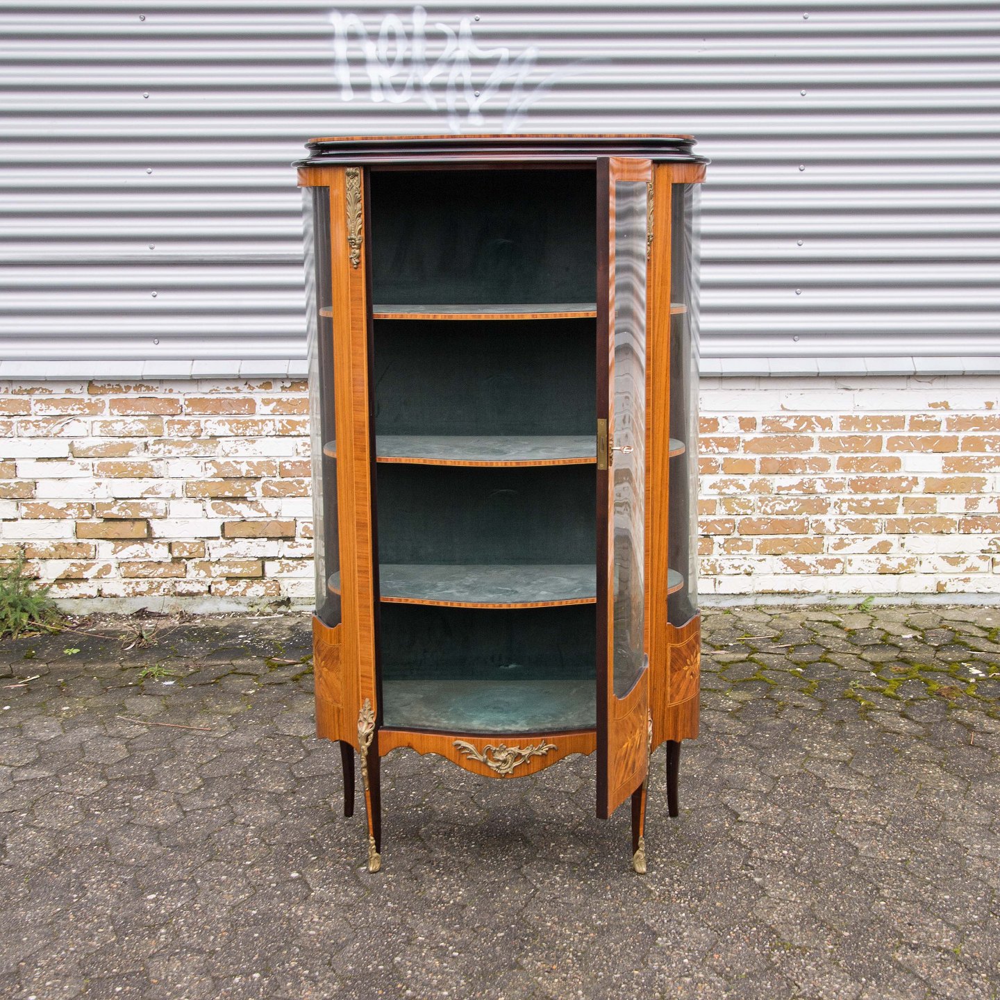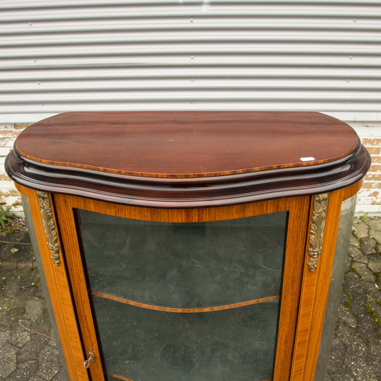 Glasskab i lakeret træ med intarsia og messing ornamenter