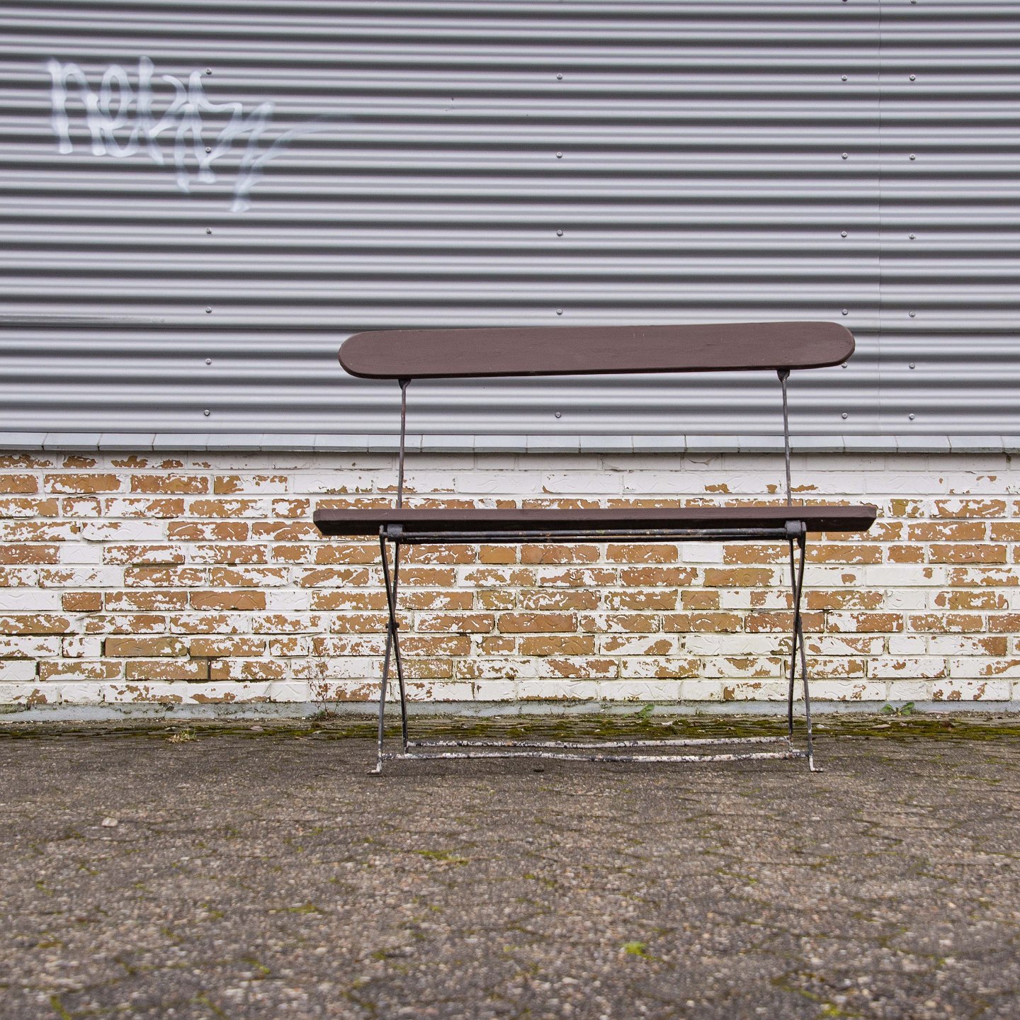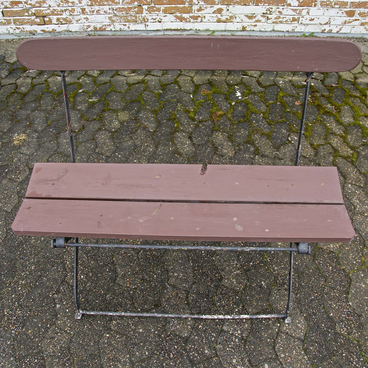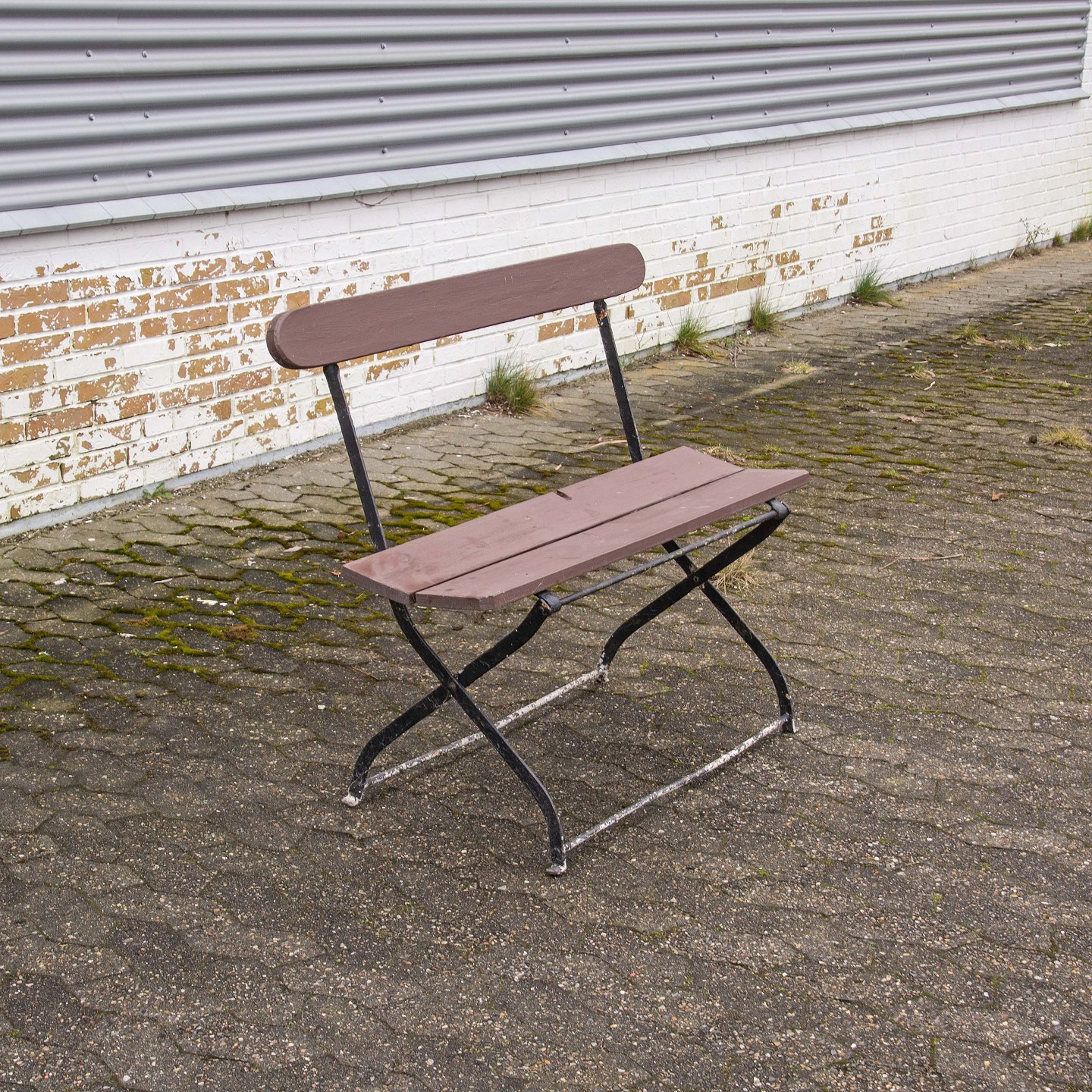 To personers bænk i sortlakeret metal med sæde og ryg i træ