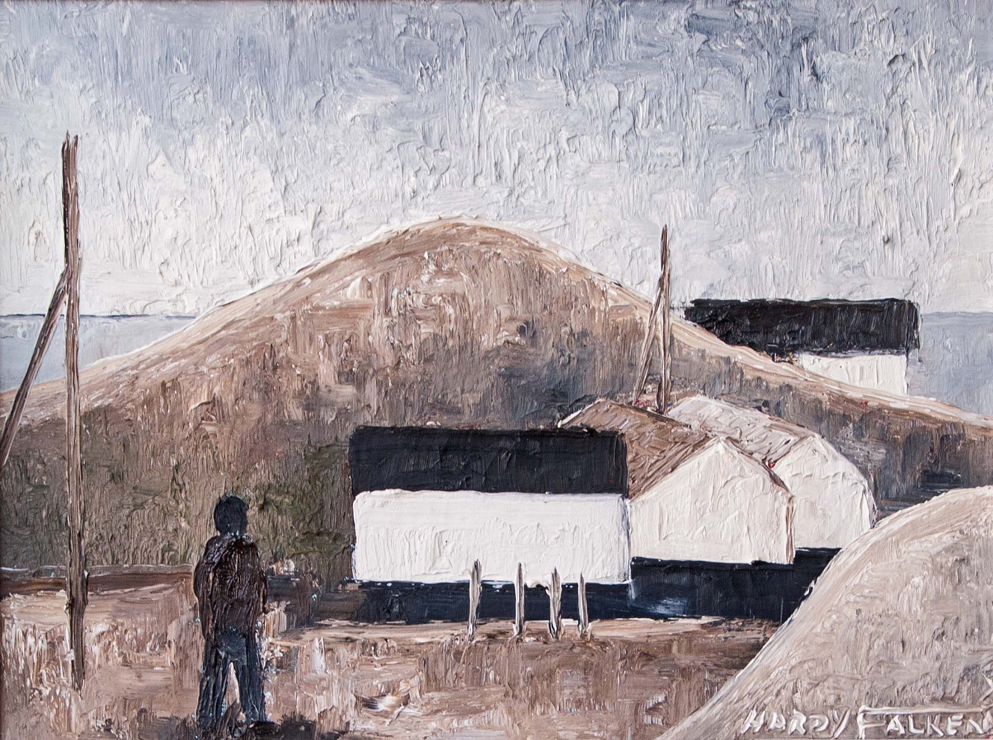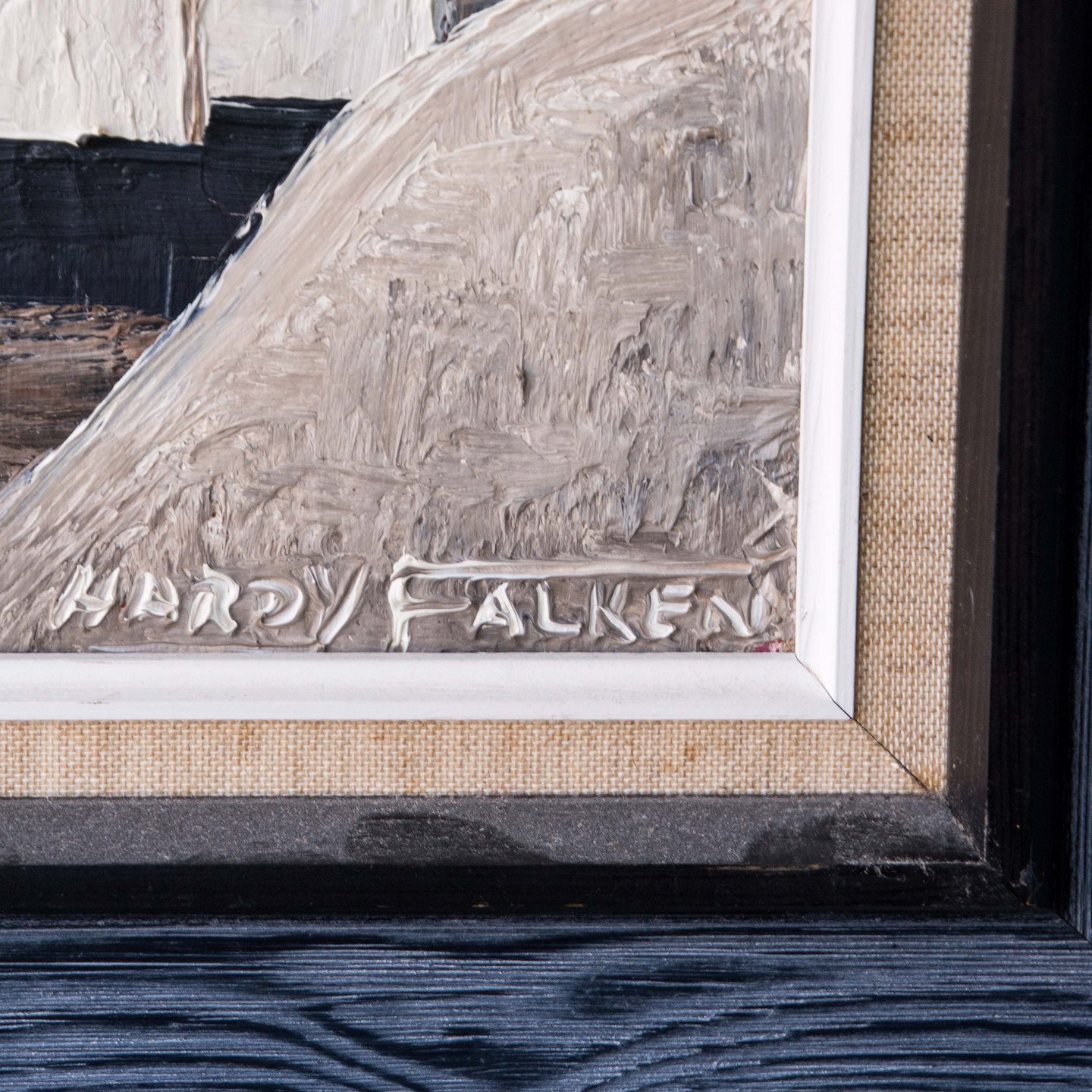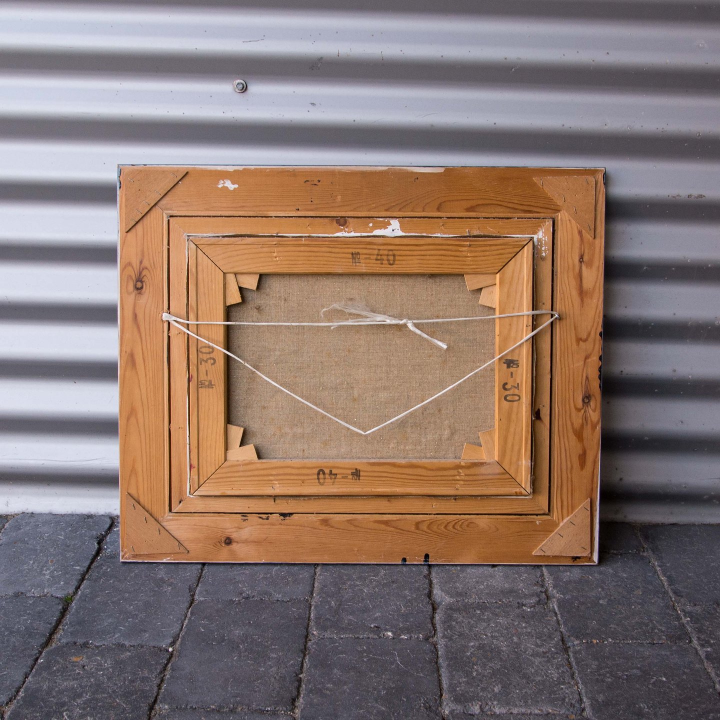 Maleri af abstrakt landskab, olie på lærred med ramme.