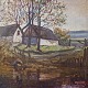 Maleri af gård ved sø