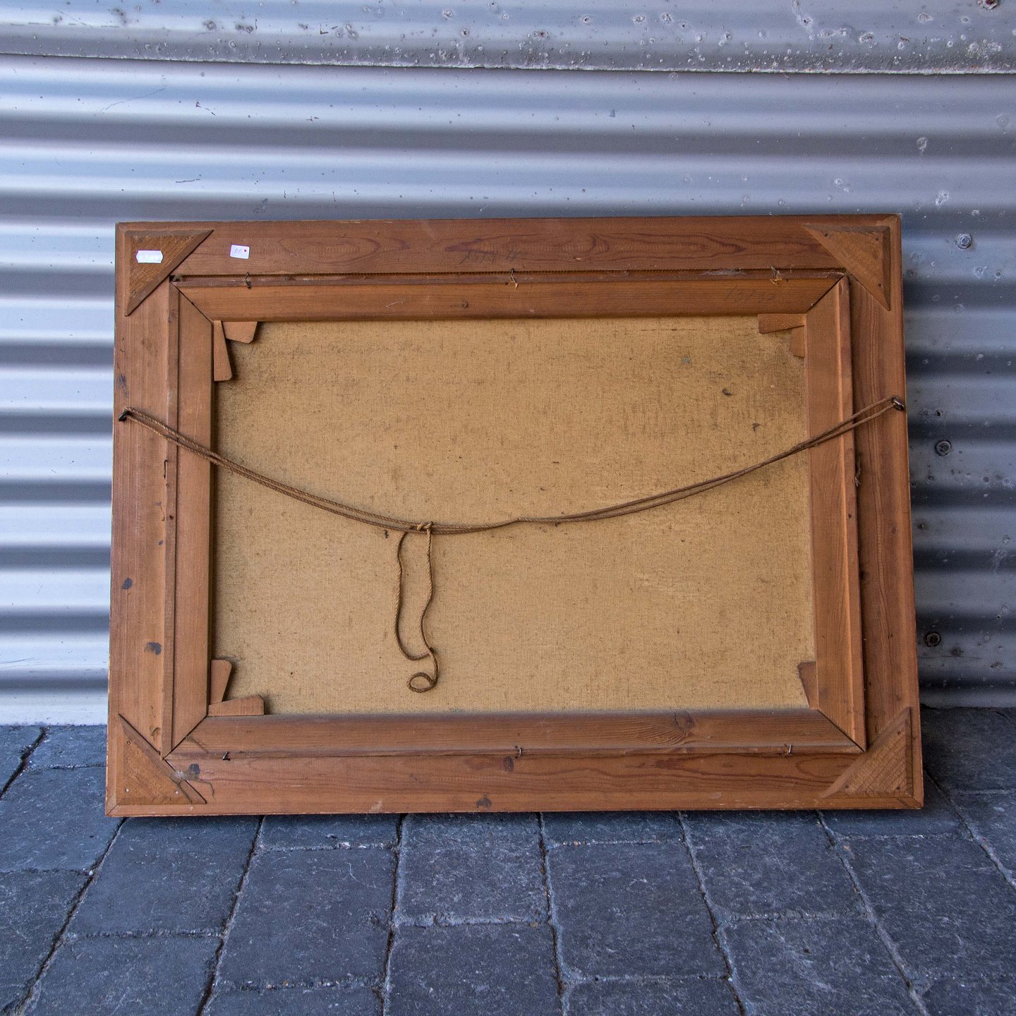 Landskabmaleri med motiv af sø omgivet af træer og marker