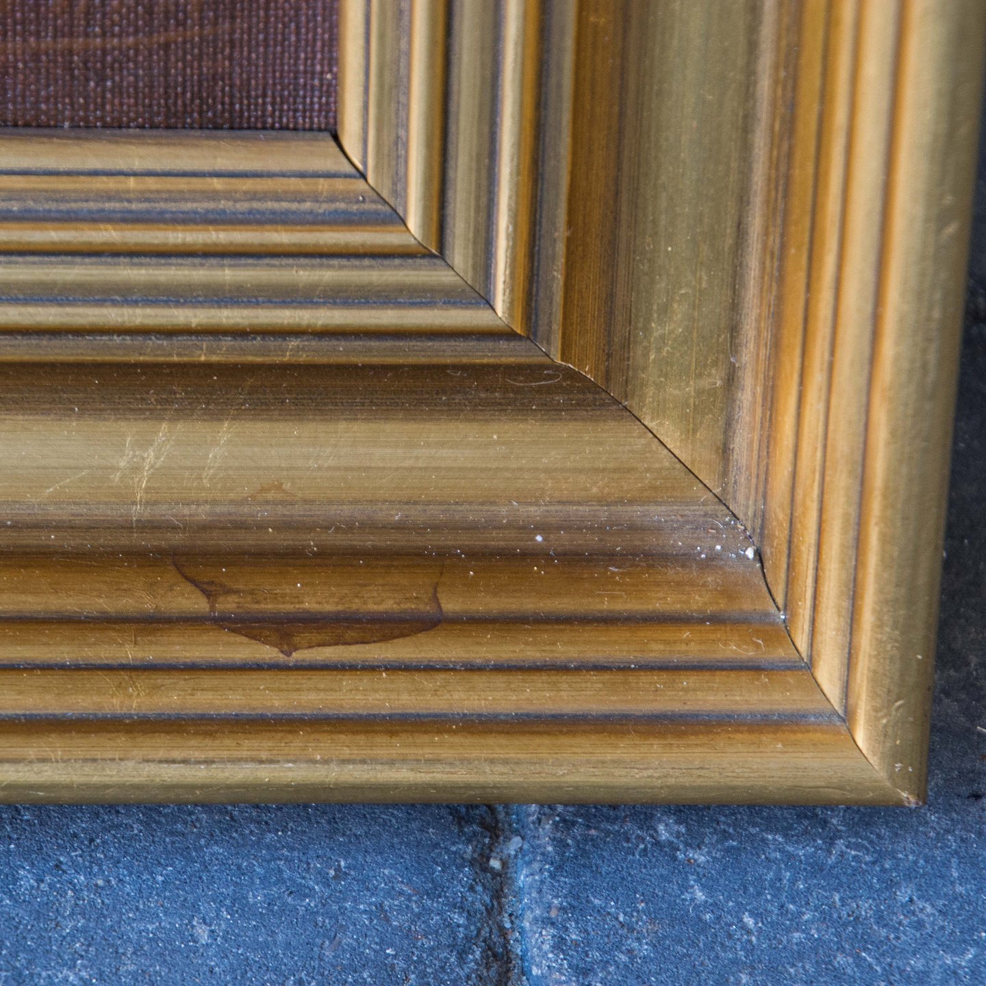 Interiør maleri med motiv af stuemiljø med siddende pige