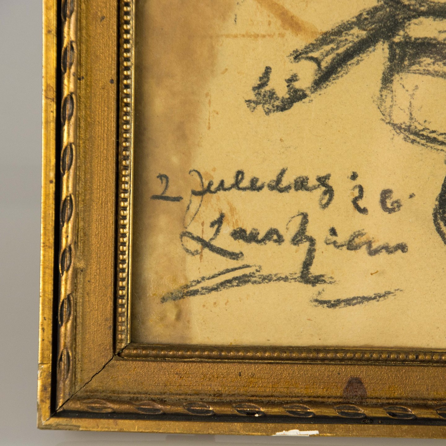 Tegnet portræt fra 2. juledag år 1926 af mand med cigar