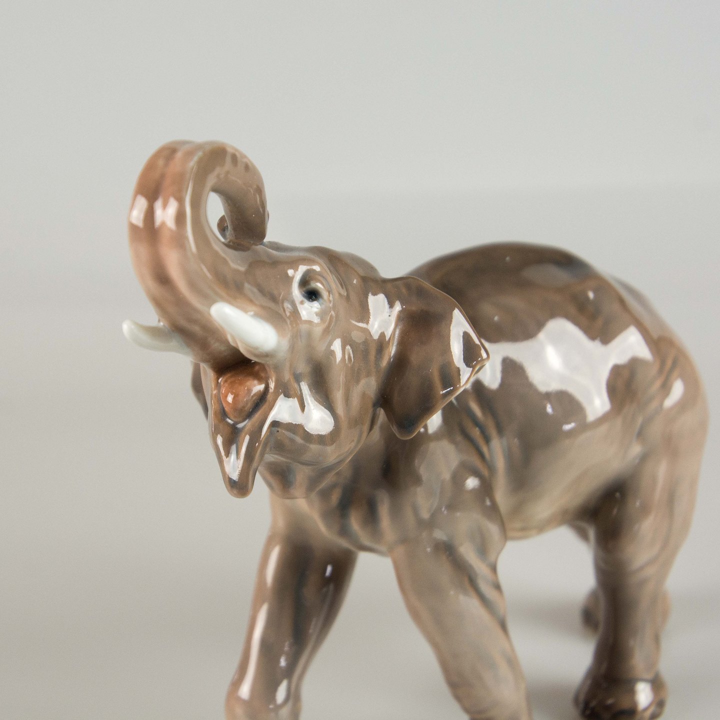 Figur i porcelæn med motiv af elefant med løftet snabel nr. 1113