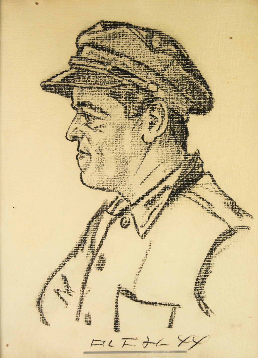 Tegnet portræt af mand i profil fra år 1944