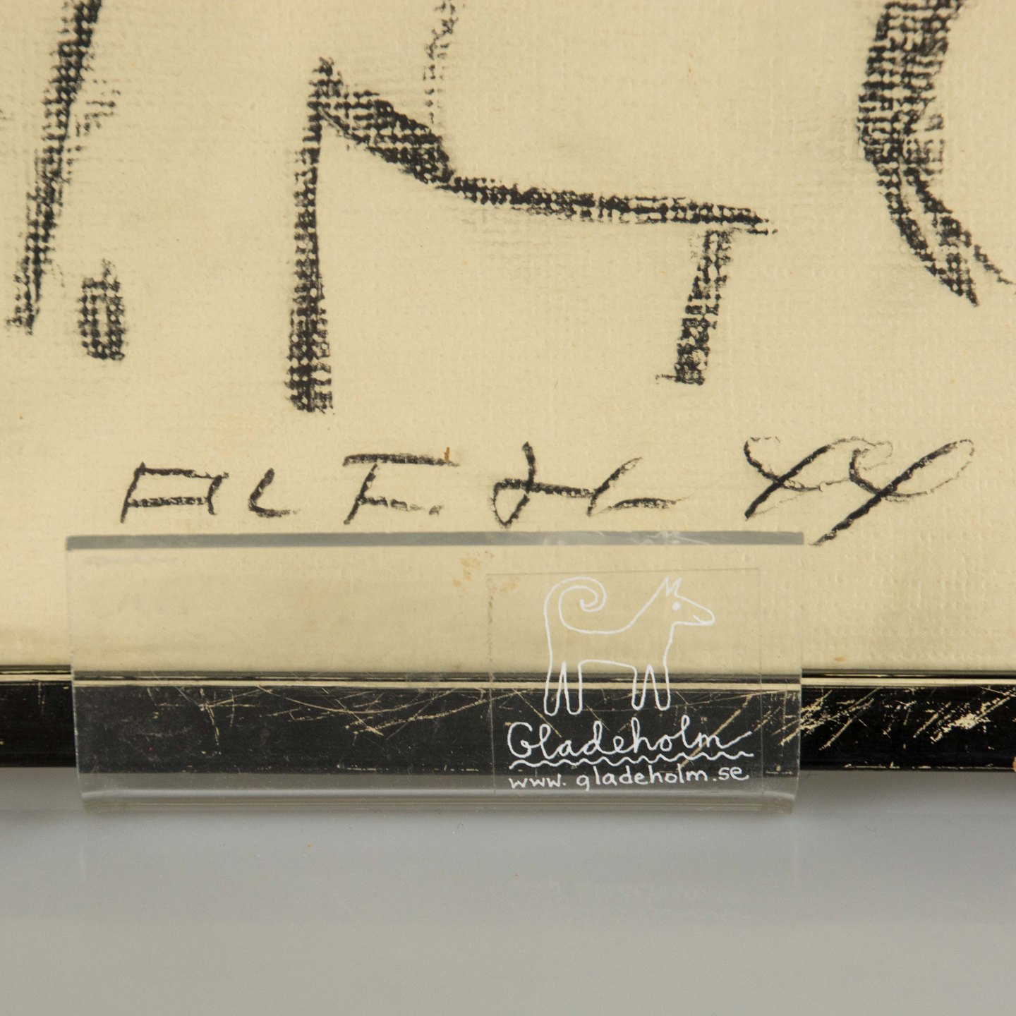 Kul på papir. Signeret.