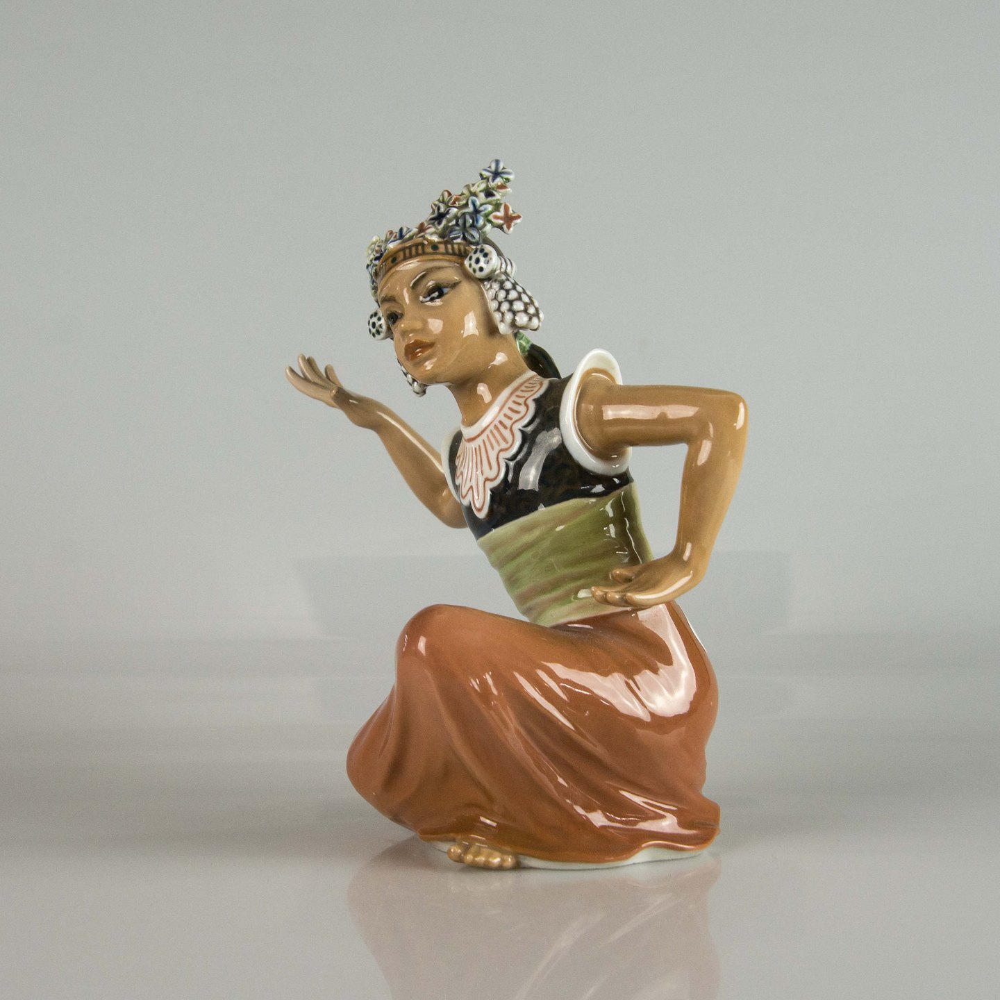 Figur i porcelæn med motiv af siddende orientalsk danserinde Monuia nr. 1323