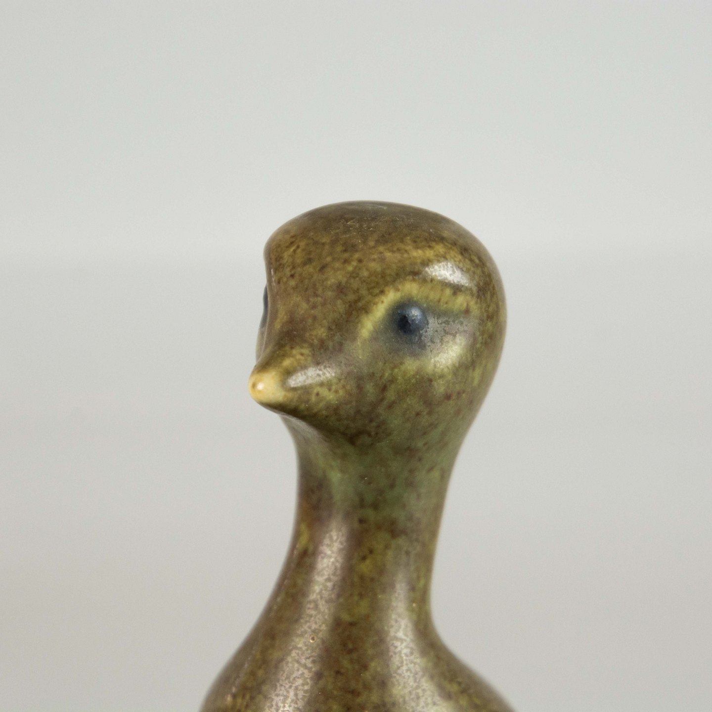 Figur i stentøj med motiv af lappedykkerunge