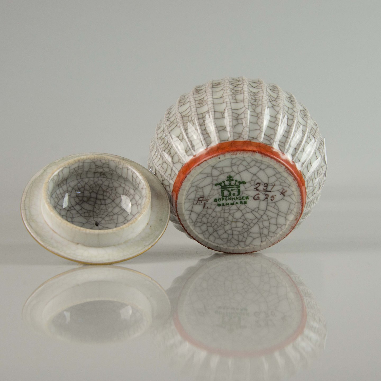Højde 9,5 cm. (med låg). Diameter 8,5 cm.