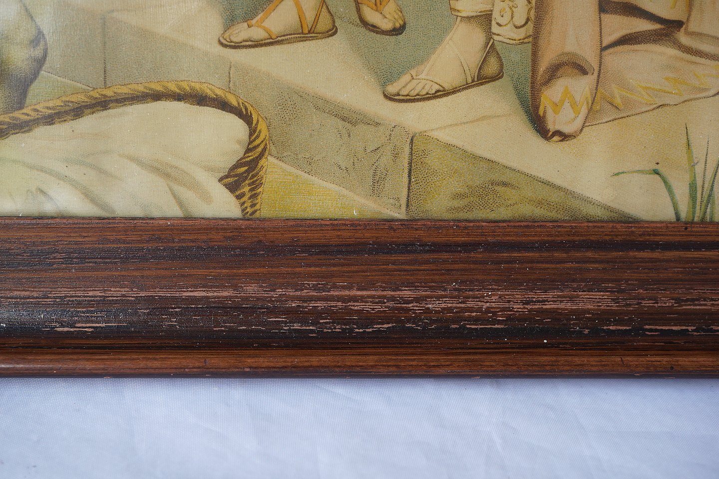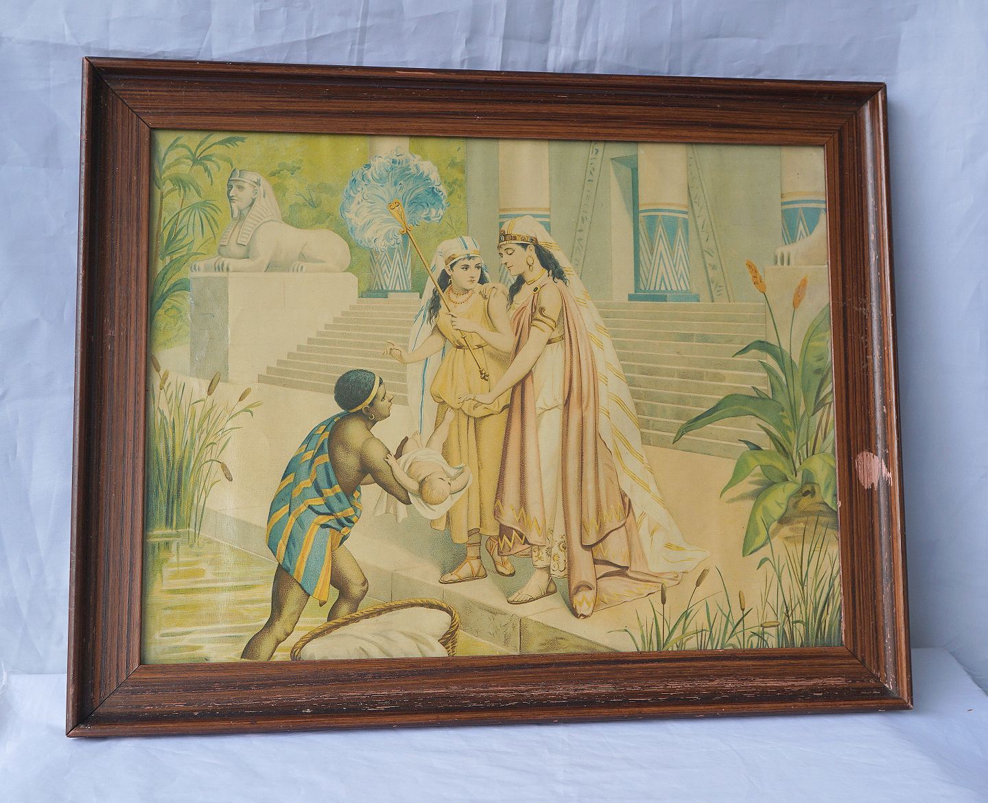 Tryk med Ægyptisk mand og kvinde, der har fundet et barn i moseskurv.