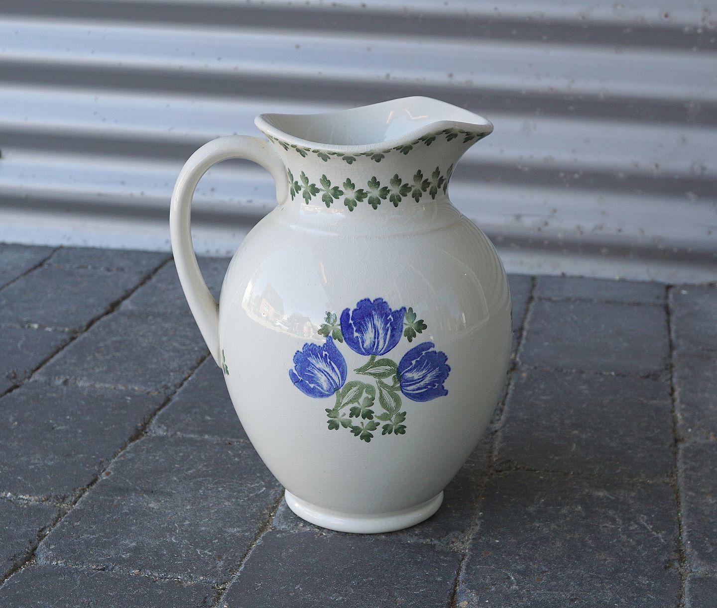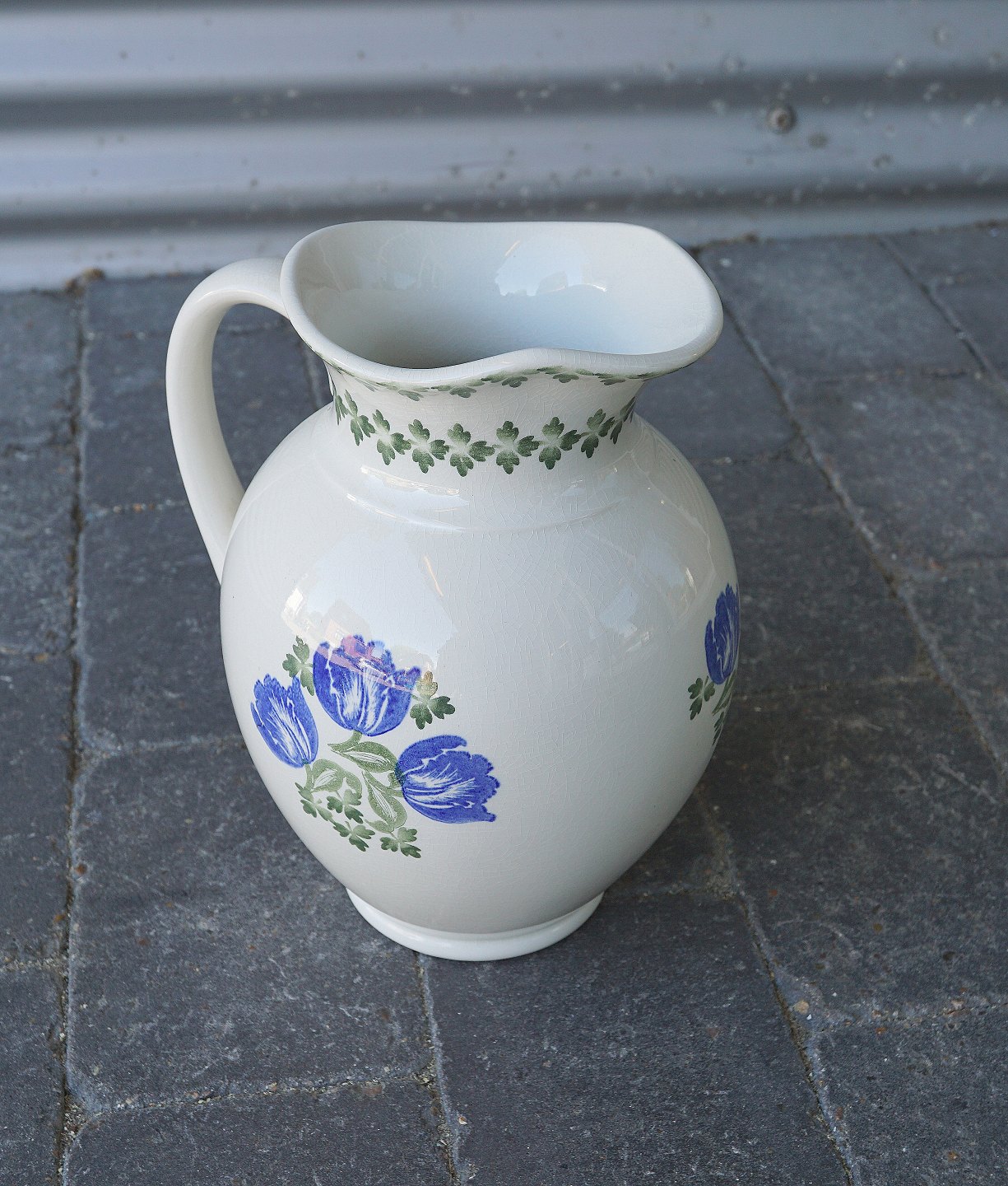 Servante kande i fajance stellet Ricard med blå tulipaner.
