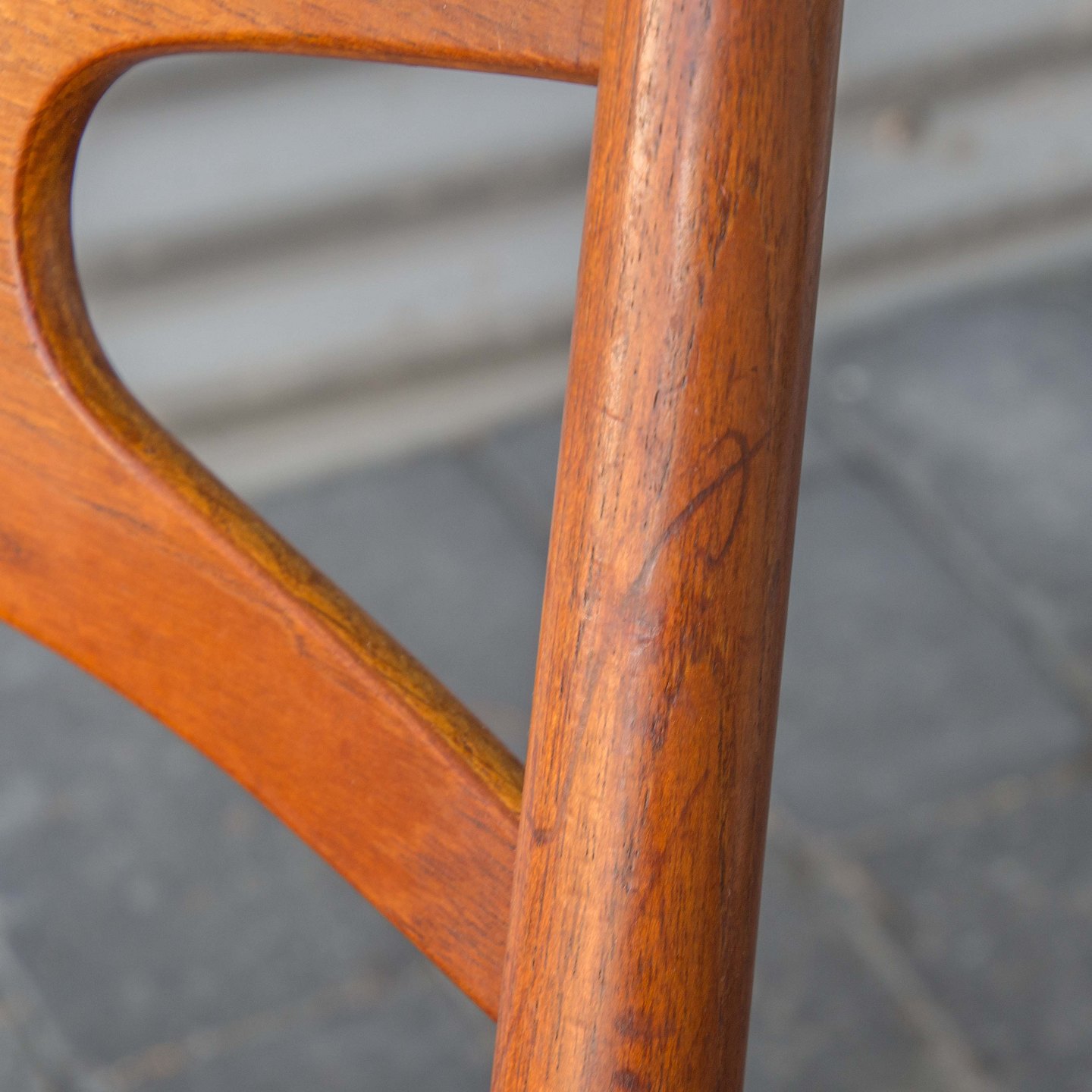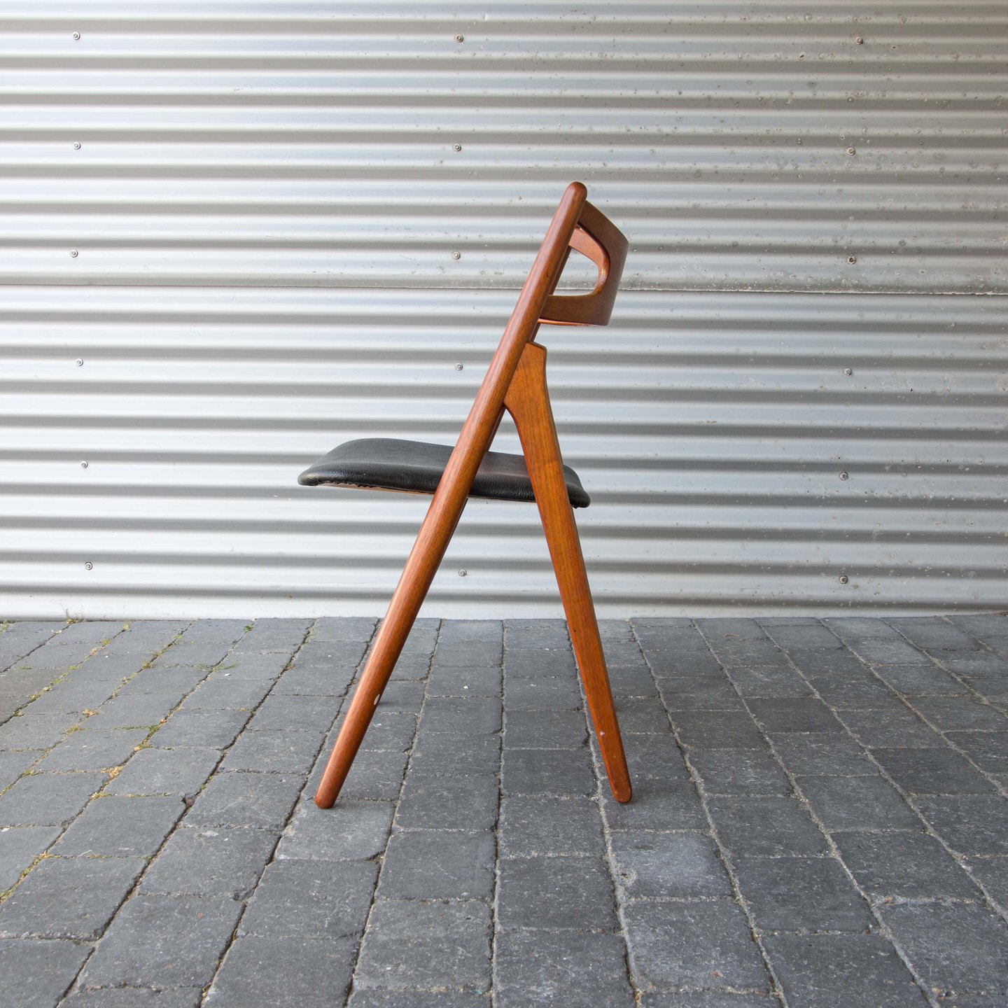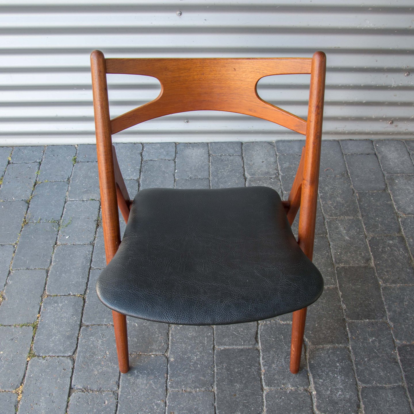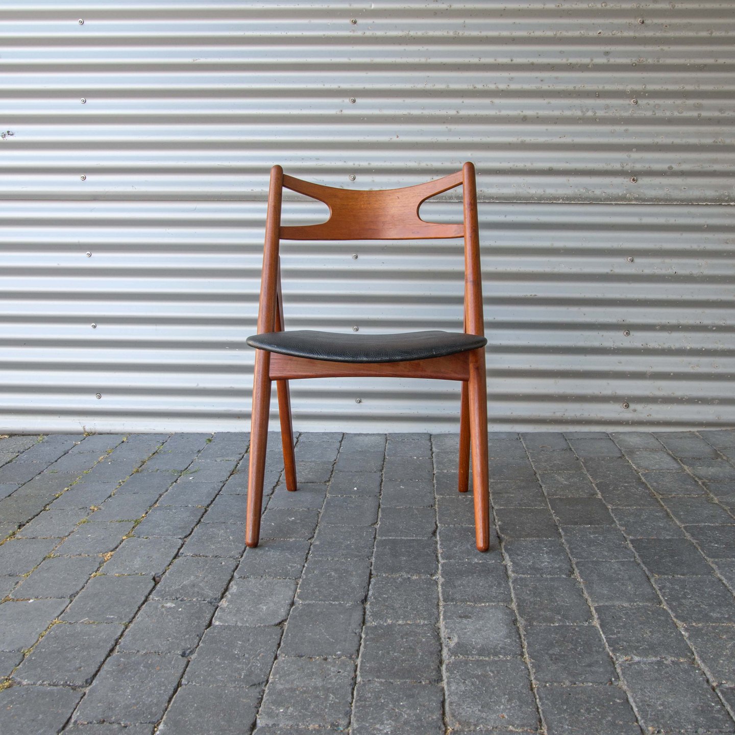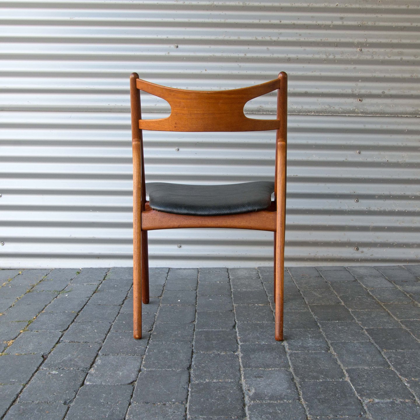 Sæt med seks stole i teaktræ med sorte lædersæder model CH29