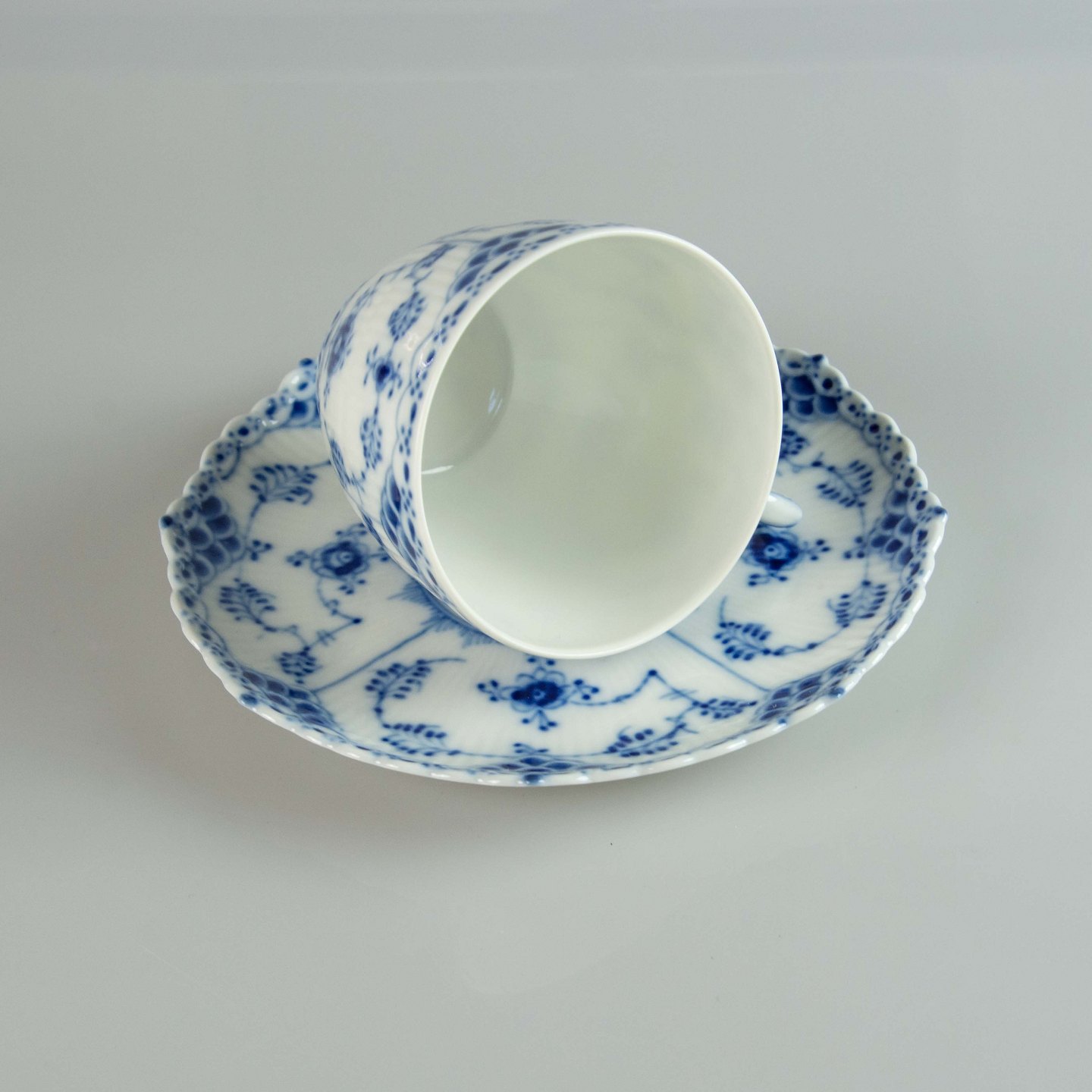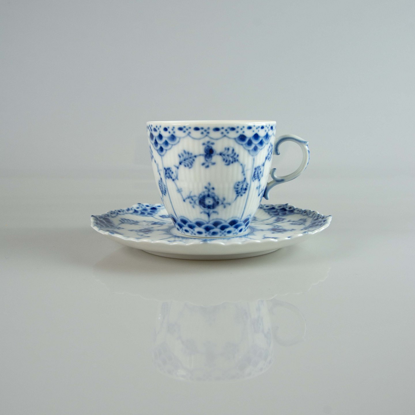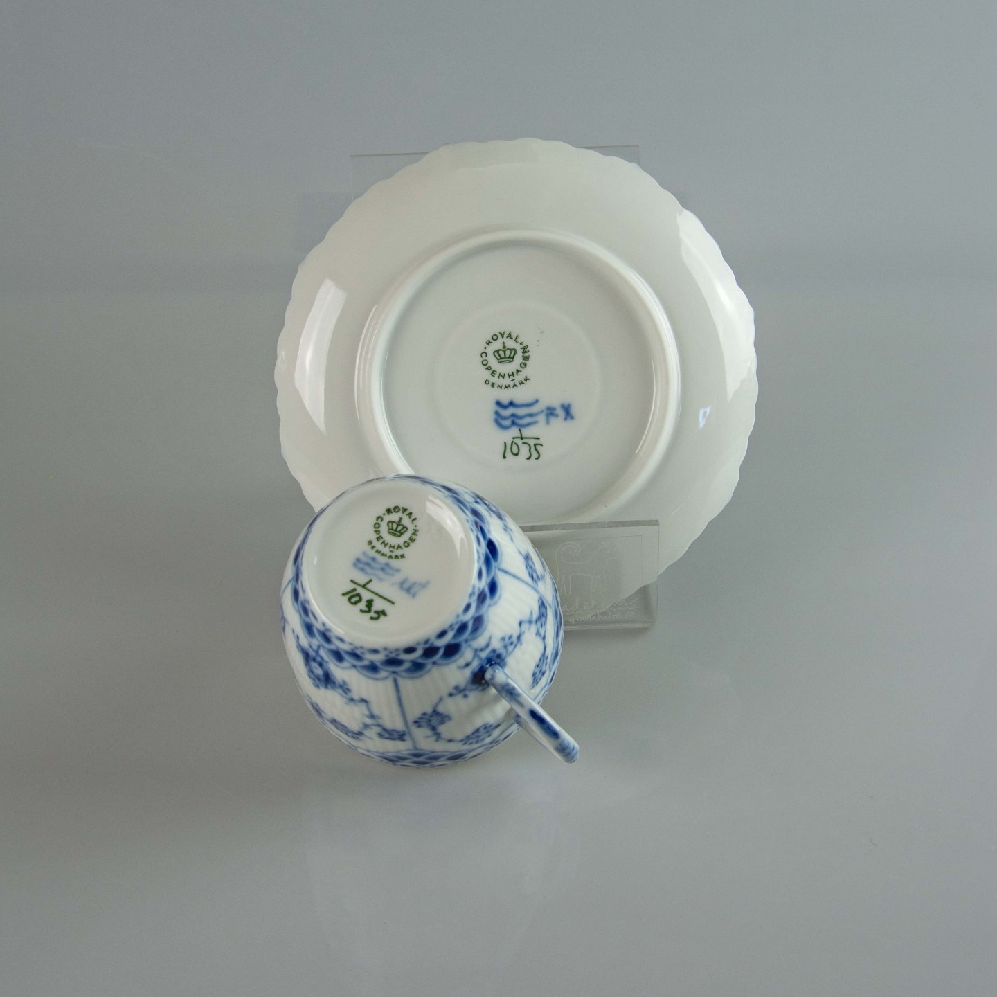 Kaffekop med underkop i porcelæn i serien musselmalet halvblonde nr. 1/1035
