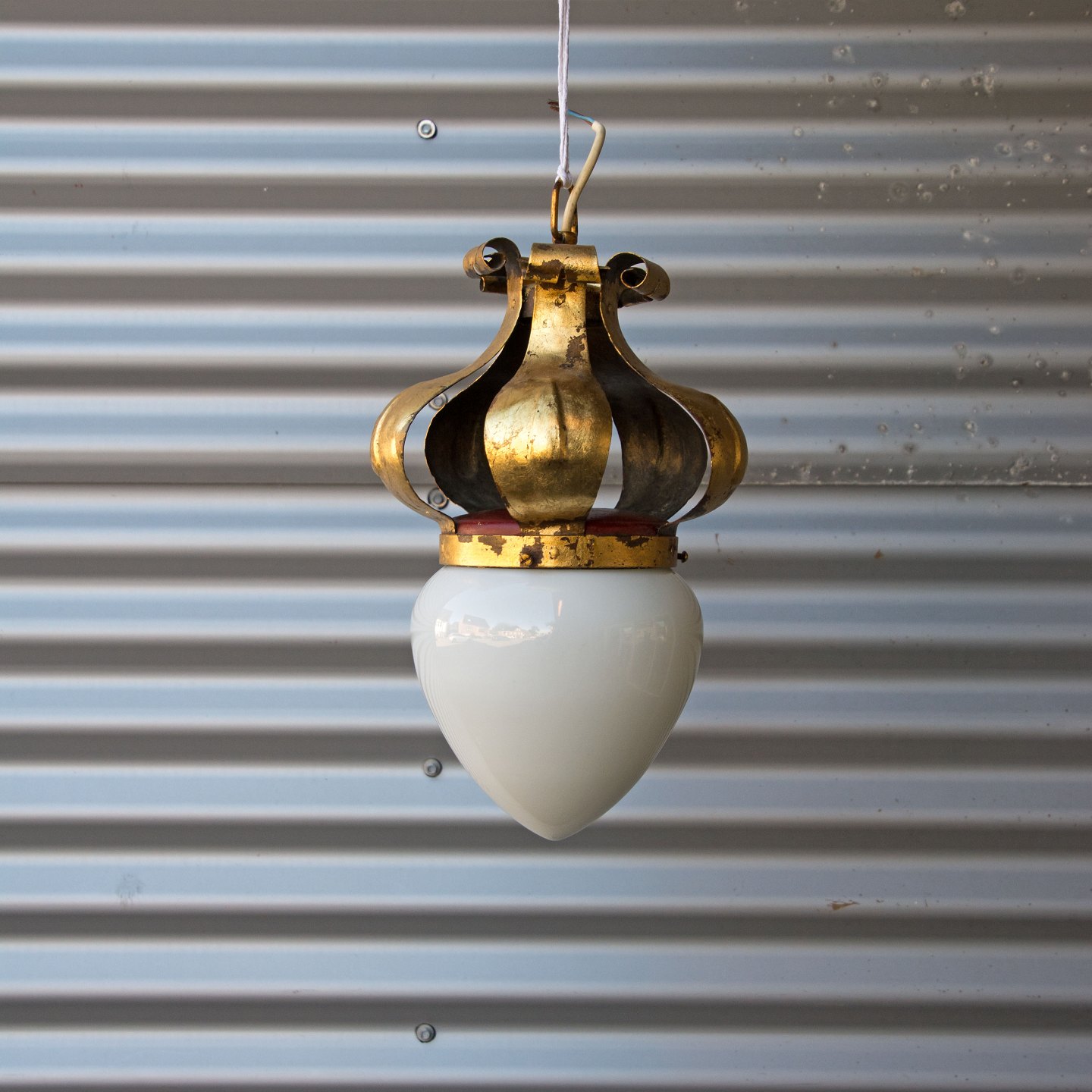 Gammel bager loftslampe fra bageri udformet som en gylden krone i dansk design.