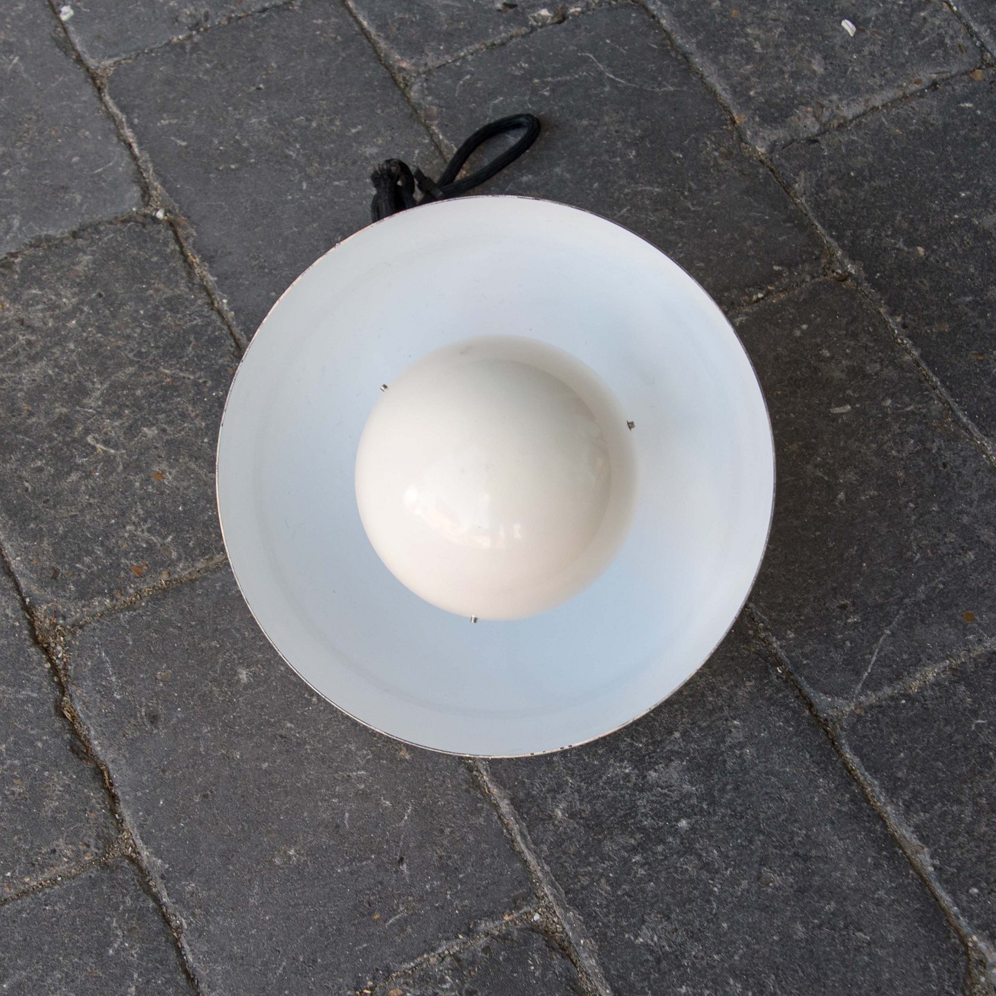 Flowerpot pendel i metal belagt med hvid emalje og fatning i porcelæn