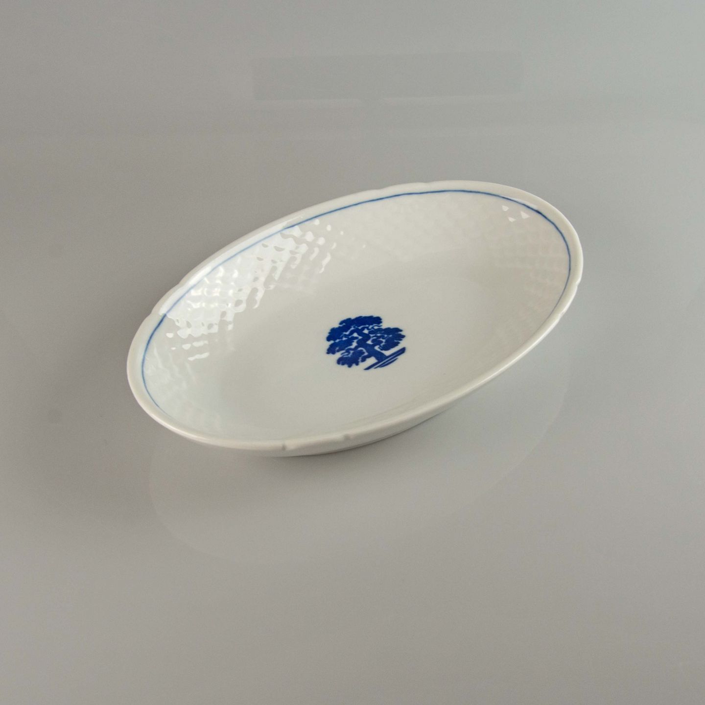 Egetræ stel i hotelporcelæn ovalt fad nr. 1020