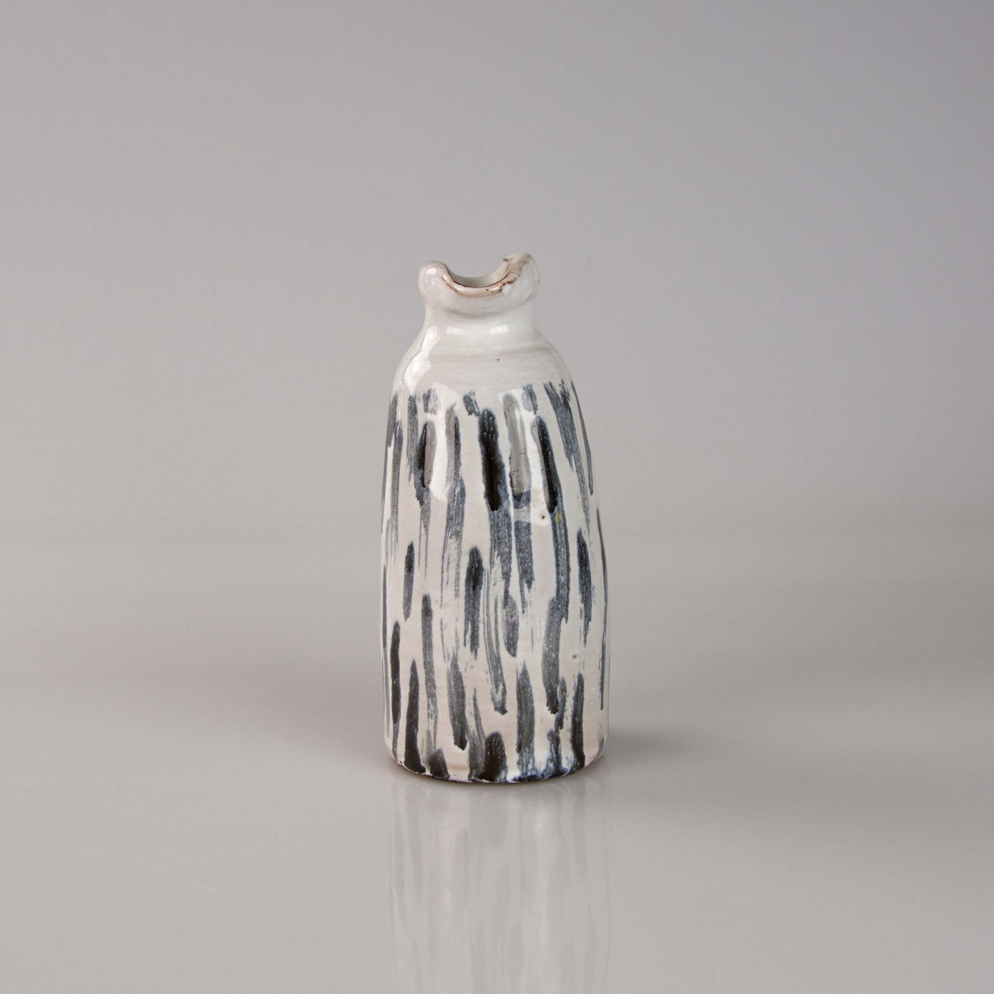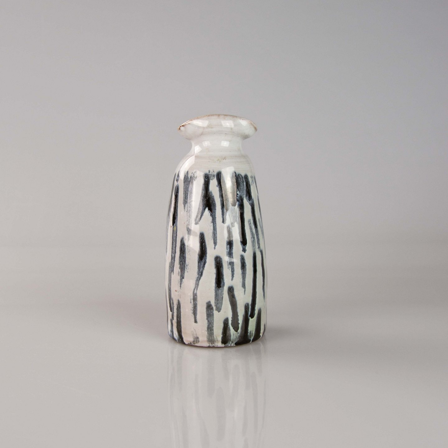 Vase i keramik med hvid glasur og stribet mønster