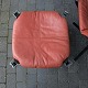Et sæt højrygget lænestole med skammel i forkromet stål og rødt læder model Falcon.