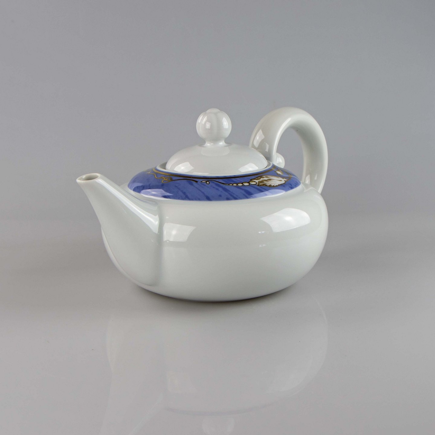 Tepotte med lyseblå marmoret bort dekoreret med gylden blomsterknop.