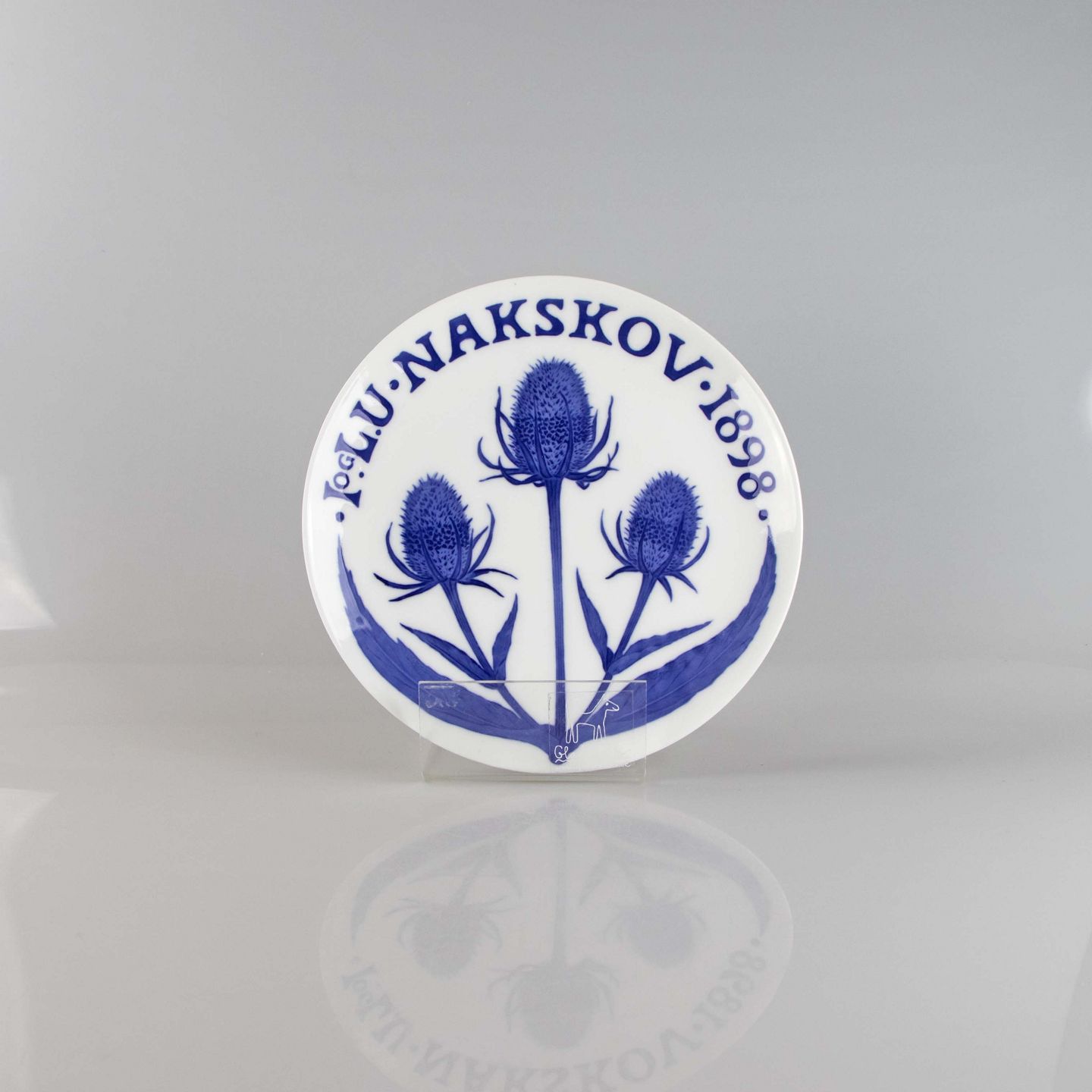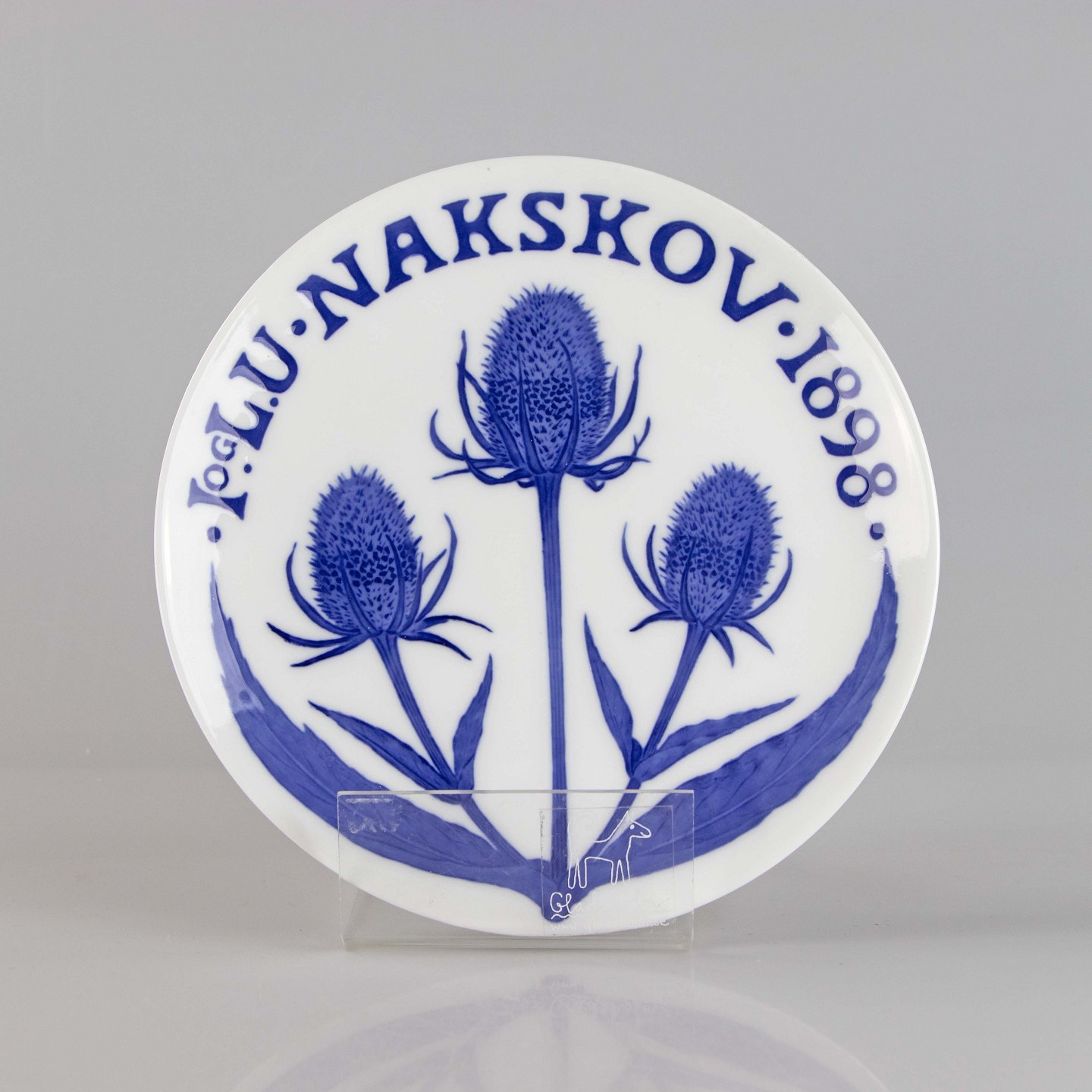 Platten er fremstillet for Industri- og Landsbrugsudstillingen i Nakskov og har motiv af en kartebolleplante.