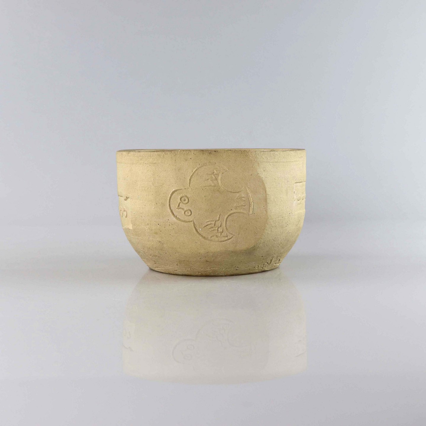 Skål i keramik med fuglemotiv og indvendigt glasur med mønster