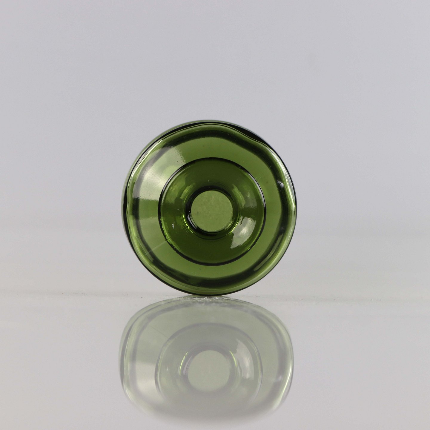 Mindre vase eller lysestage i grøn glas
