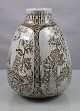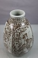 Bjørn Wiinblad, kantet vase nr. 3173/244. vasen er udført med brun streg og 4 forskellige motiver. Fremstillet hos Nymølle.