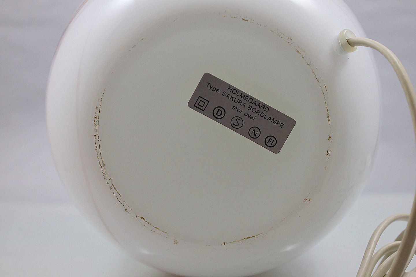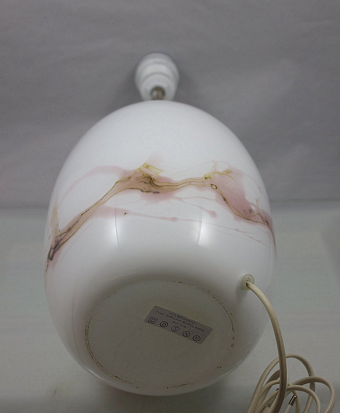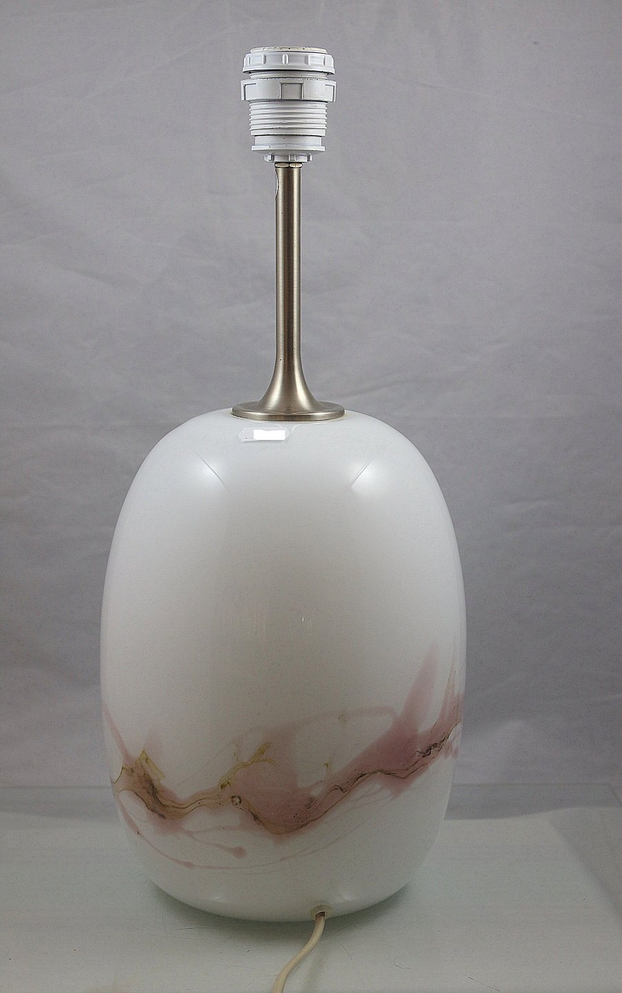 Holmegaard Glasværk. Stor bordlampe Sukura, oval fod. Lampen er af hvidt opalglas med rosa bemaling