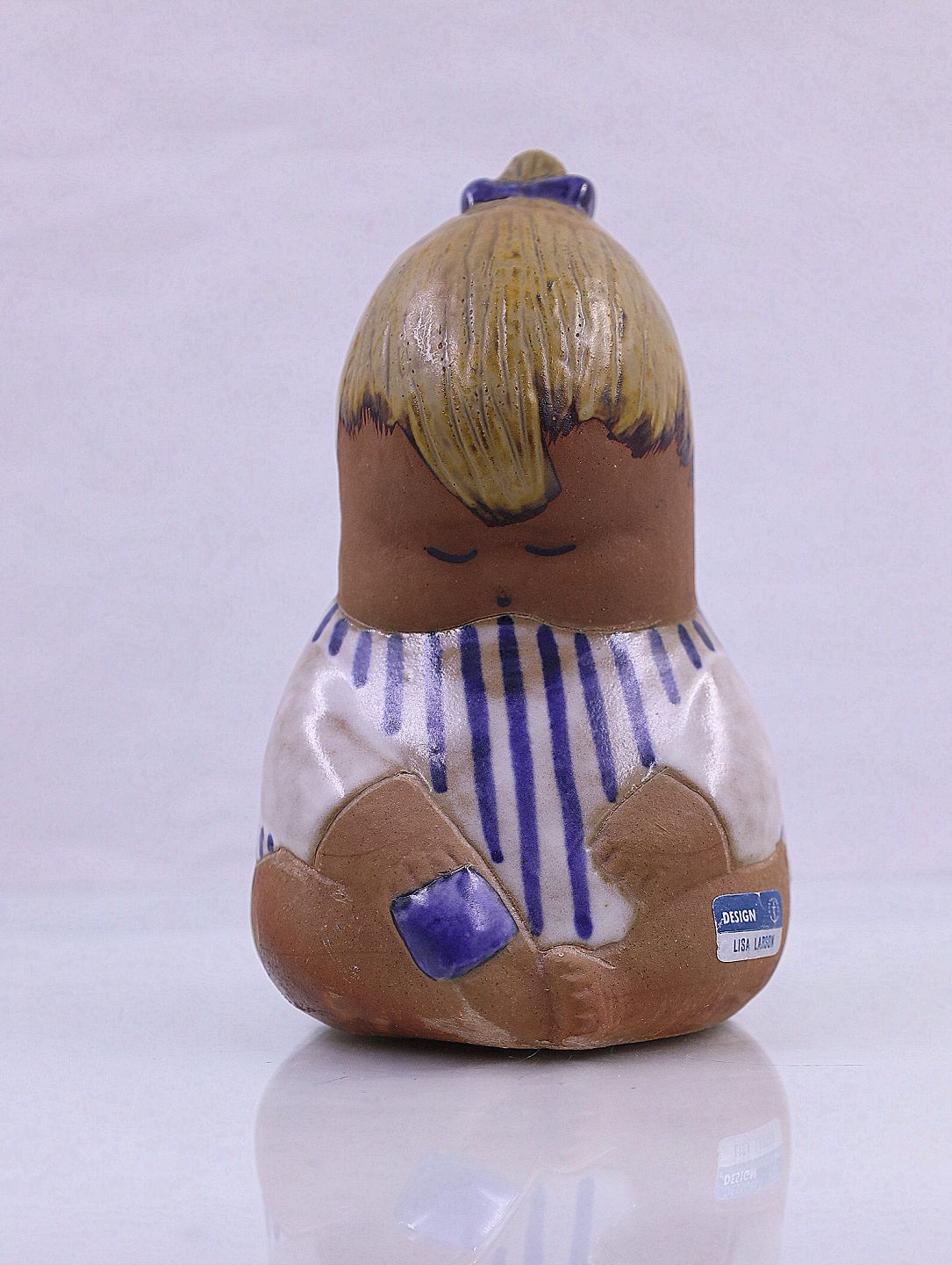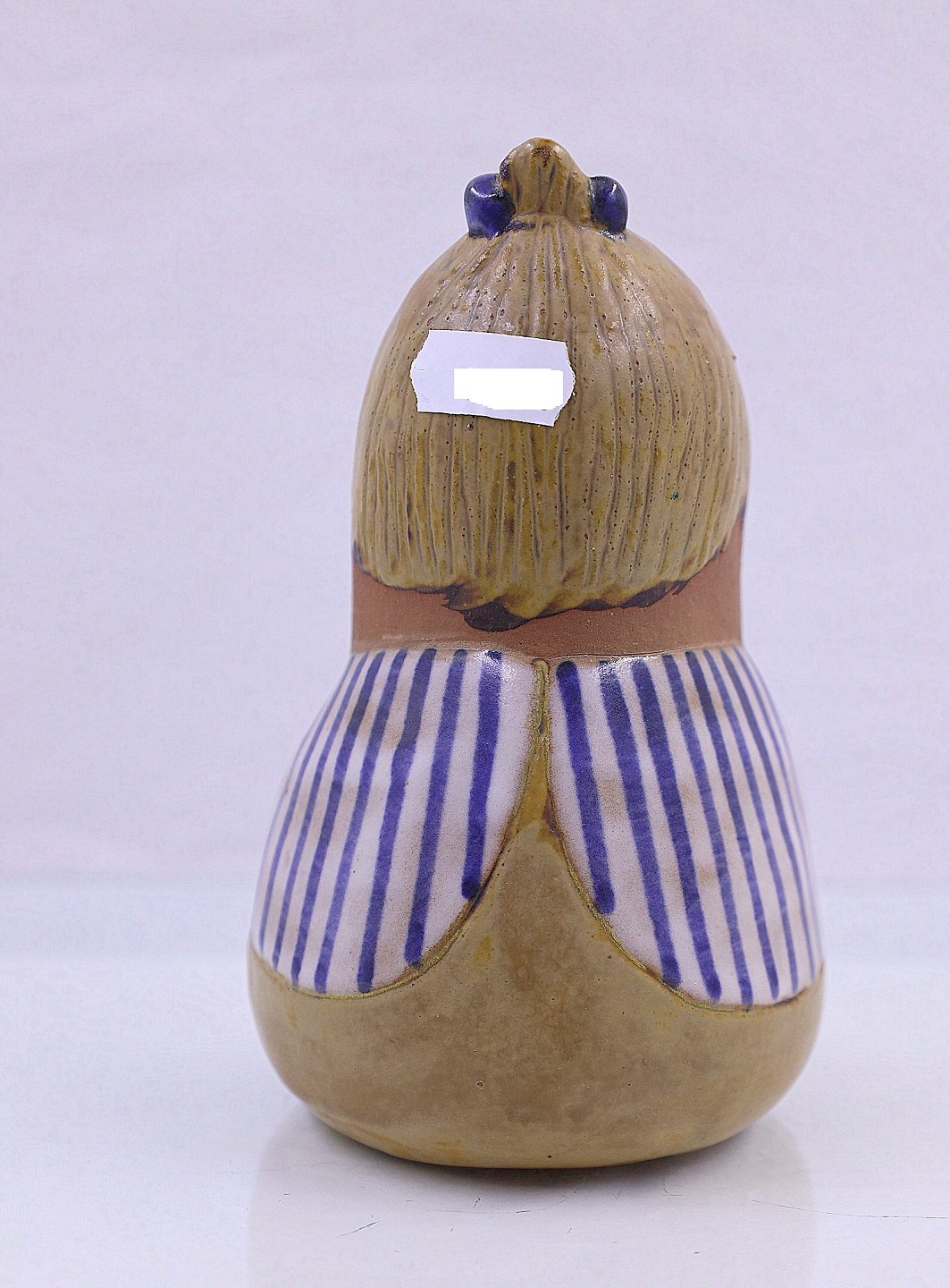Lisa Larson for Gustavsberg. "Johanna" med stribet kjole og håret sat op på hovedet.