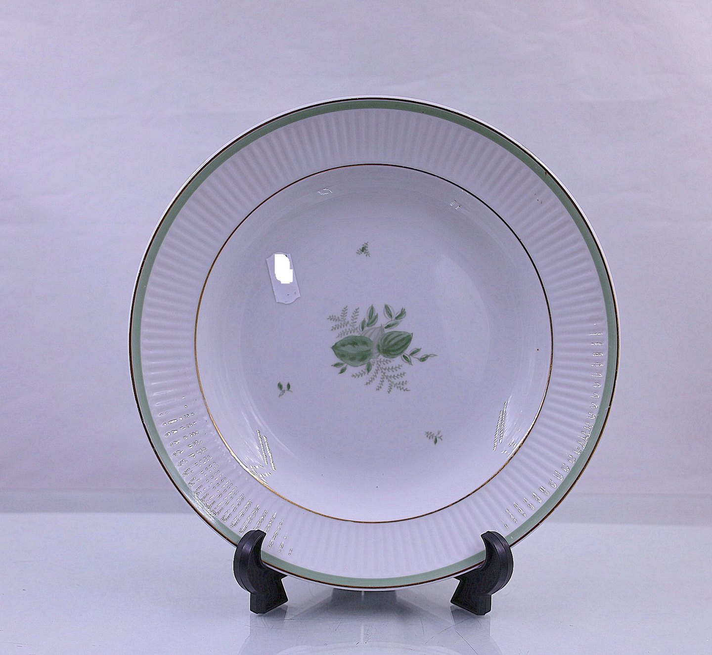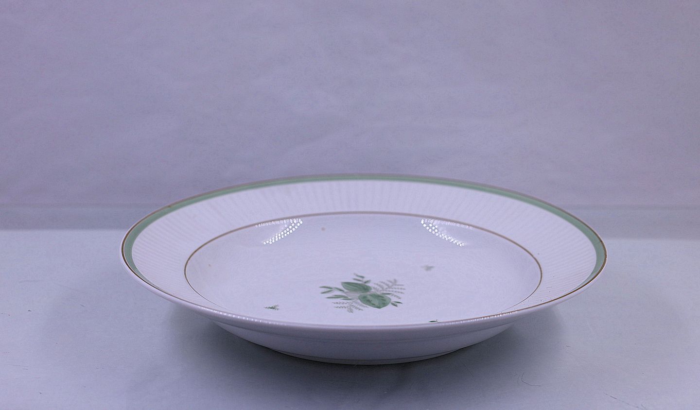 Royal Copenhagen. Grøn melodi/green Melody, dybtallerken no 1513/14062. Grøn melodi er hvidt riflet porcelæn, med blomster i grønt samt grøntbånd og guldbånd