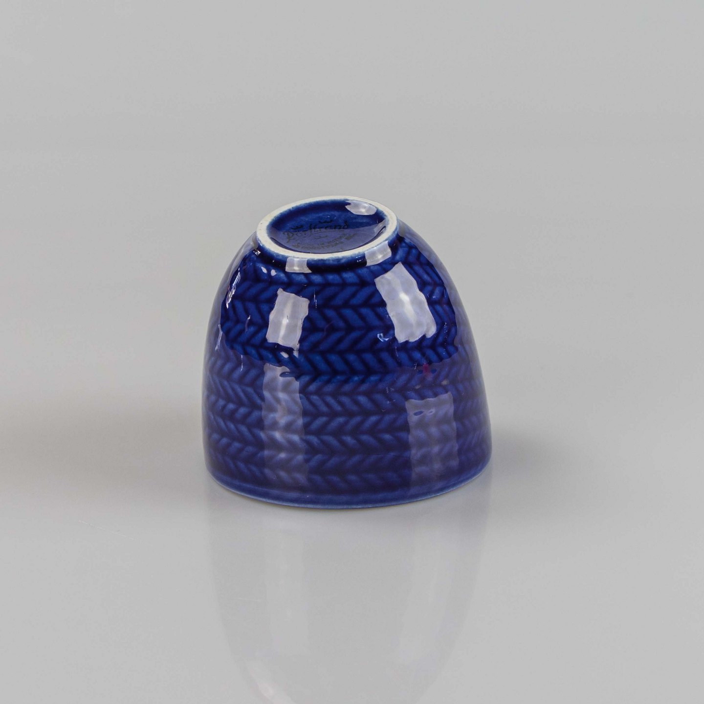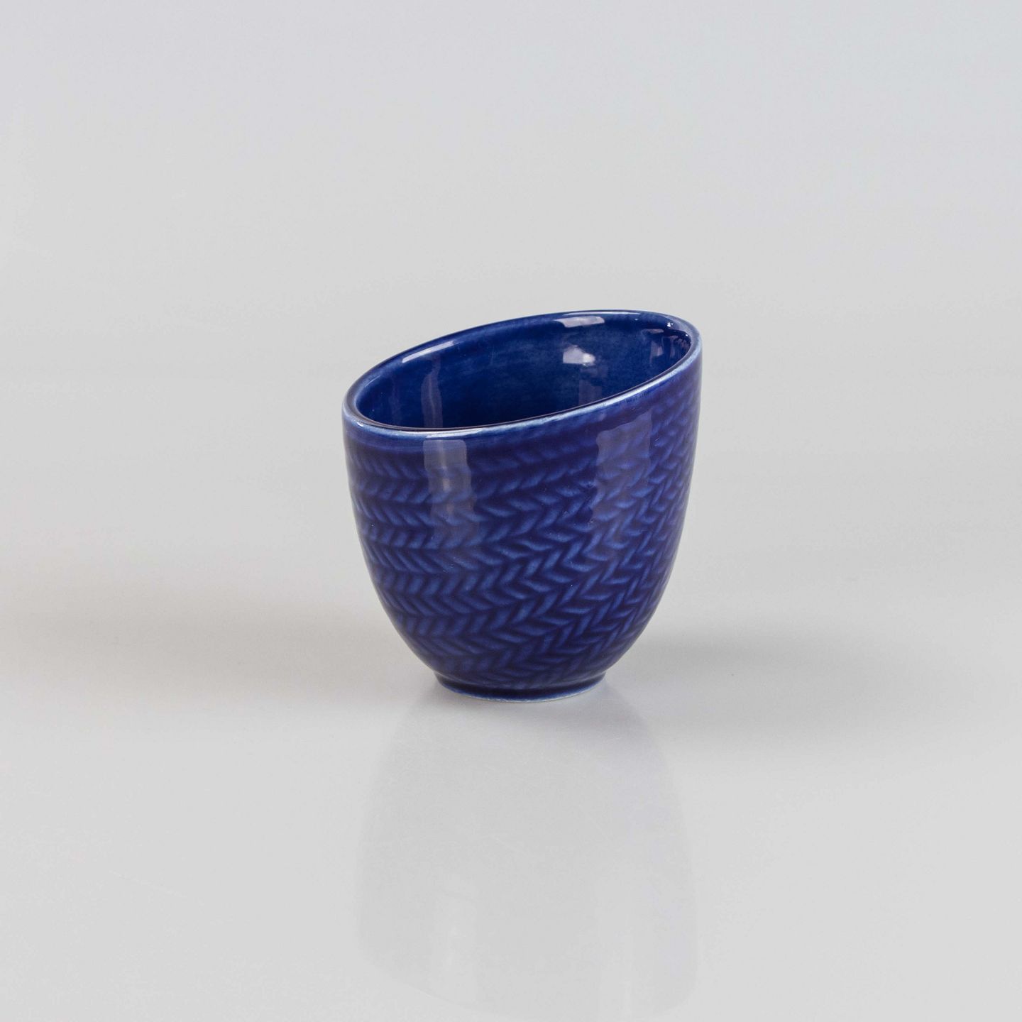 Bøger fremstillet i blå fajance med indstøbt sildebensmønster.