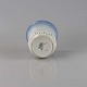Vase fremstillet i porcelæn med skelform i gradueret blå nuancer med guldkant samt motiv af måge.