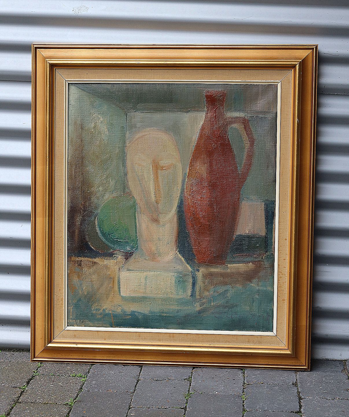 Maleri, Jens Bernth. Stilleben, med rød kande. Maleriet er i guld ramme med lærredskant. Maleriet er signeret J. Bernth. Der fremkommer enkelte brugsspor.
