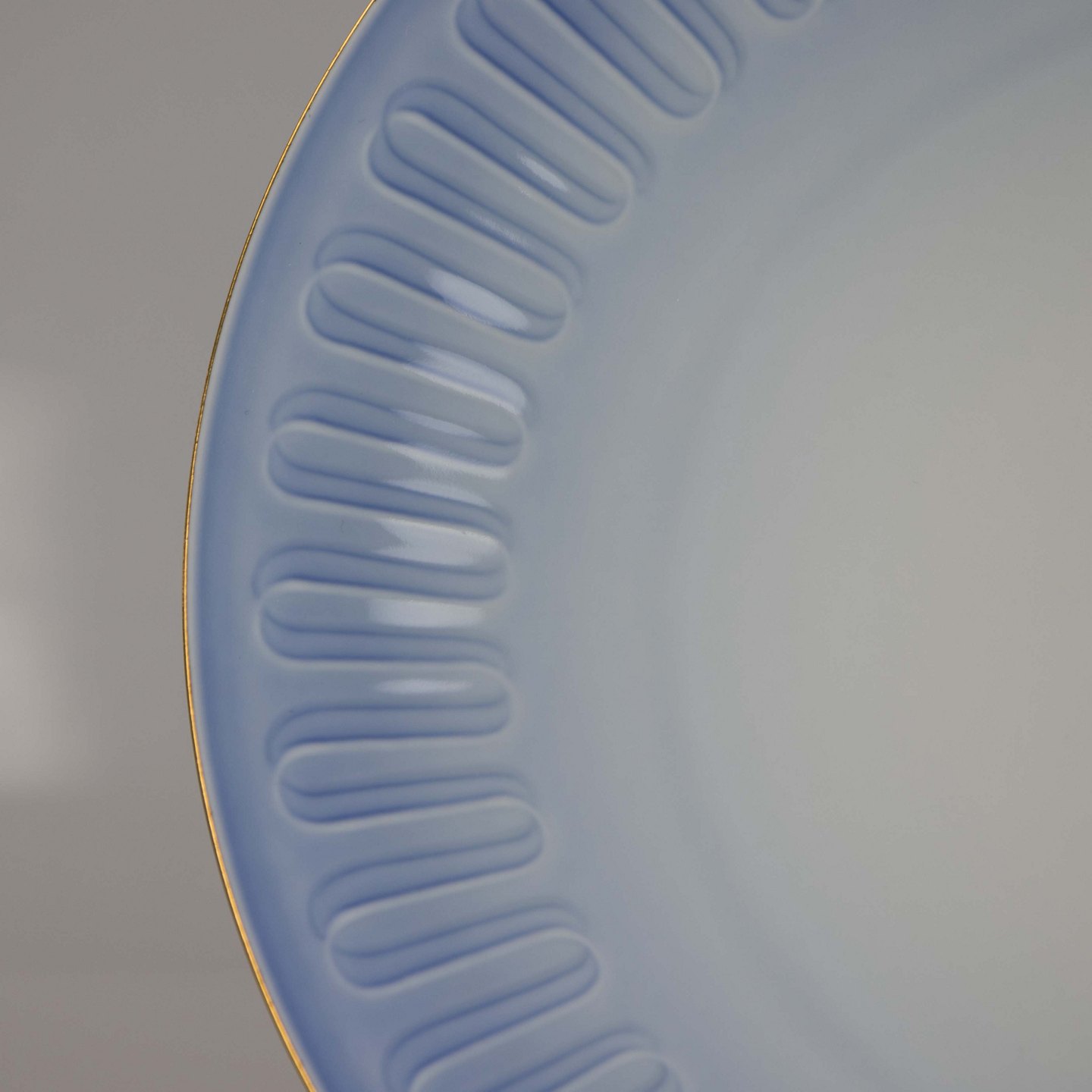 Tallerken fremstillet i porcelæn med stribet motiv i gradueret blå nuancer.