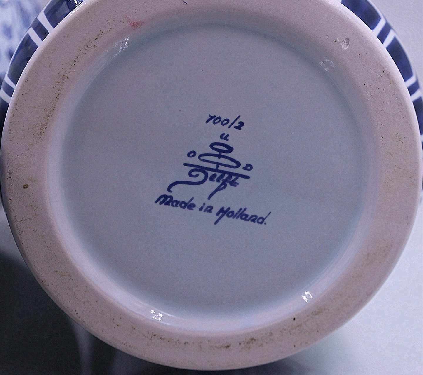 Delft apotekerkrukker, nr 700/1 og 700/2. Hollandske apotekerkrukker fra Delft, krukkerne er med låg. Delfterfajance, hollandsk fajance, fremstillet i byen Delft. Fra 1500-tallet blev der produceret fajance i Holland, og værkstederne i Delft var førende fra midten af 1600-tallet til ca. 1725.