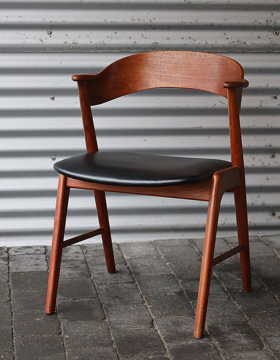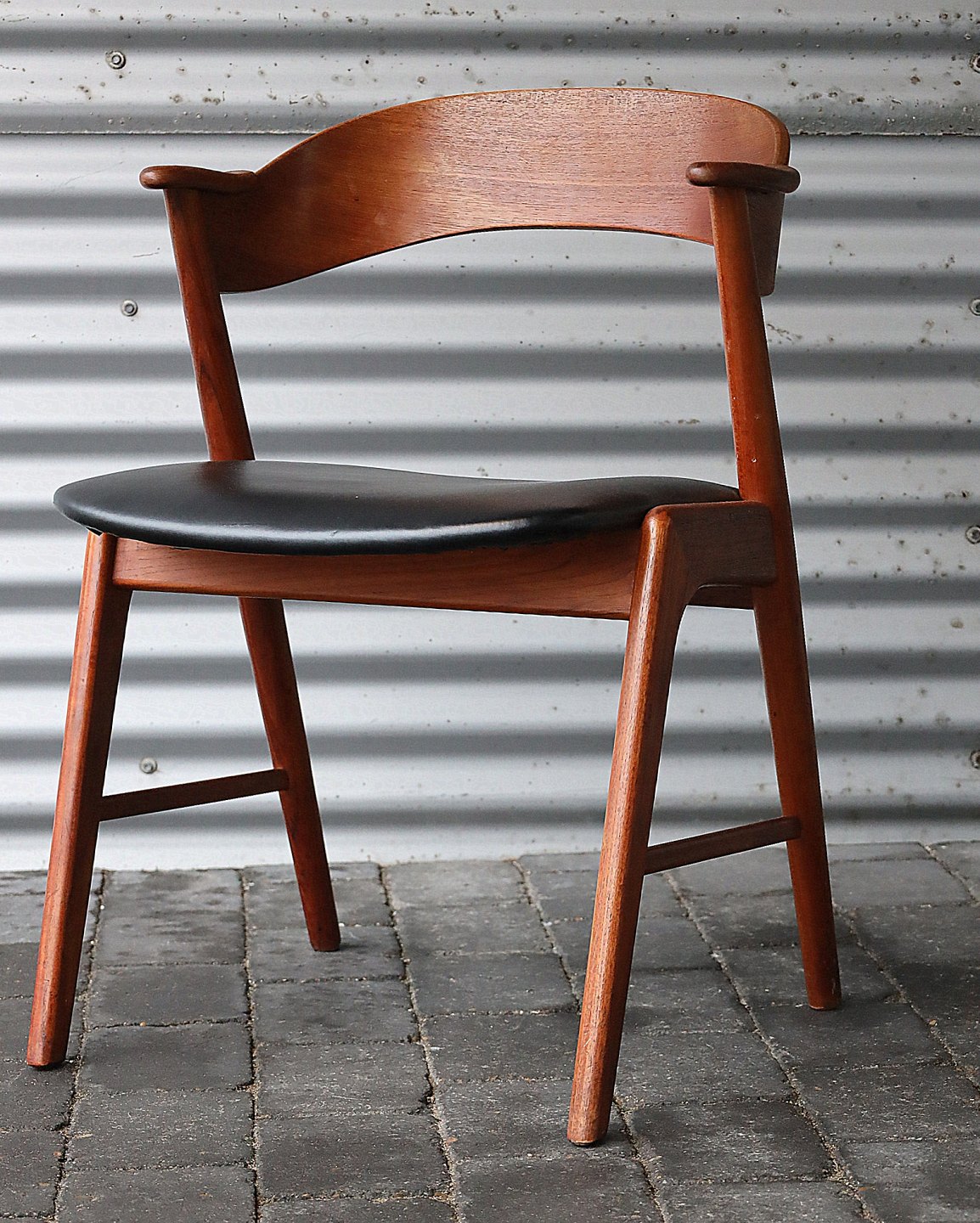 Korup Stole. Teaktræs stol med lædersæde, formspændt ryg og små armlæn. Samlet pris kr. 8000 for alle 4
