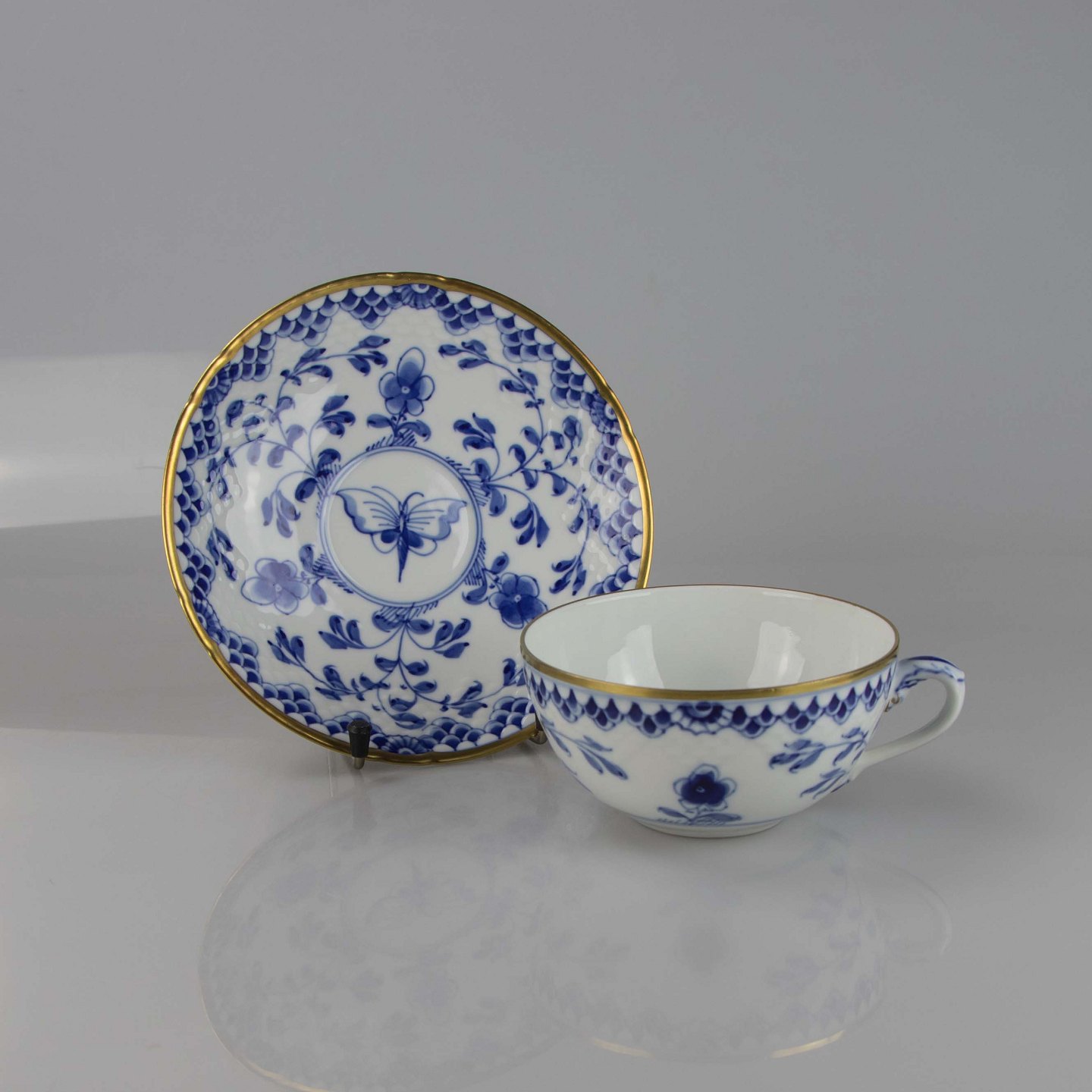 Tekop med underkop fra stellet Dickens Sommerfugl med guldkant nr. 473