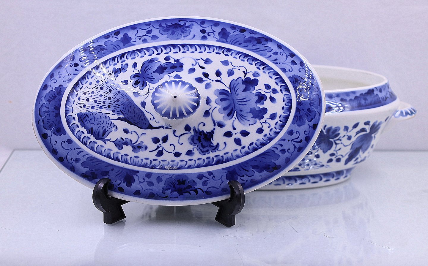 Fajance, kunstfajance, kongeligt, spisestel, Blue Peacock, skål, lågfad, terrin
