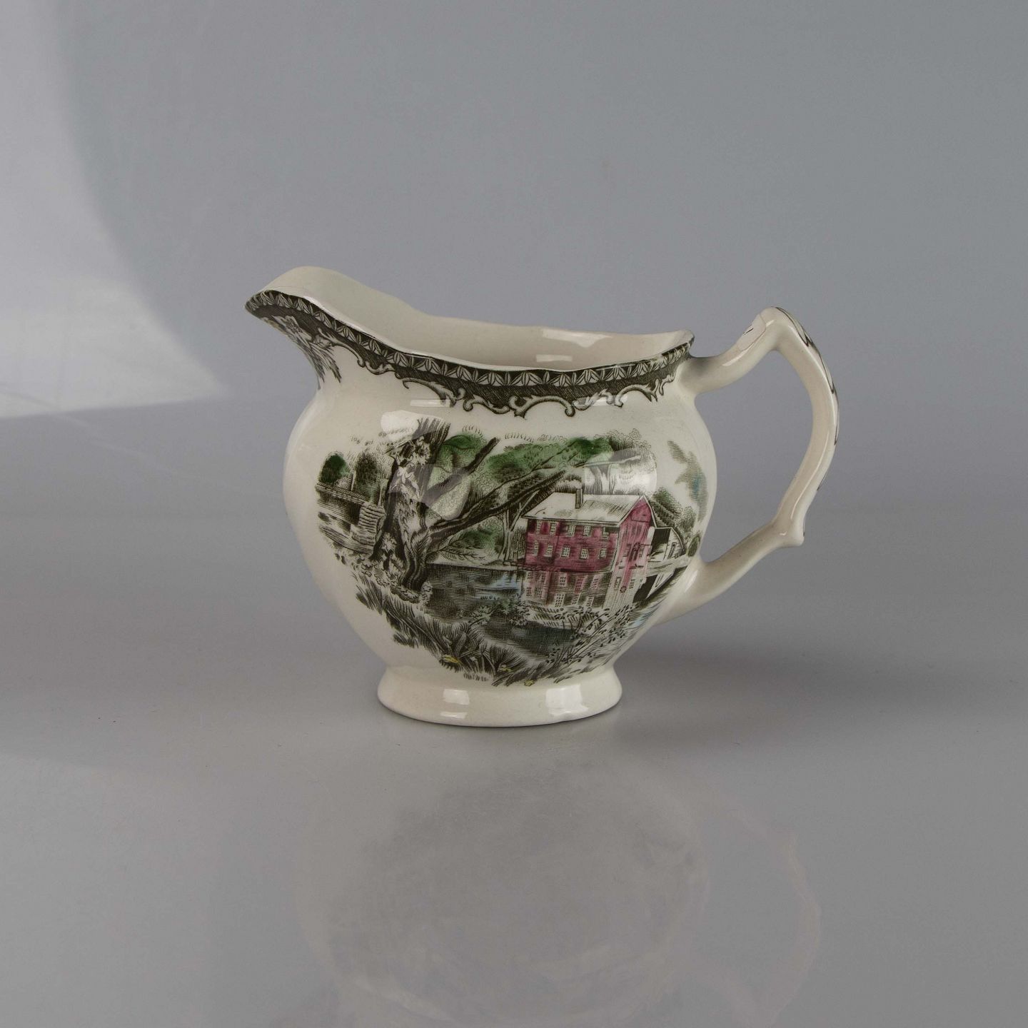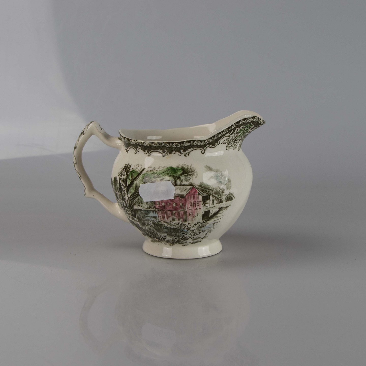 Kande i lys fajance med multifarvet landsbymotiv af The old mill.