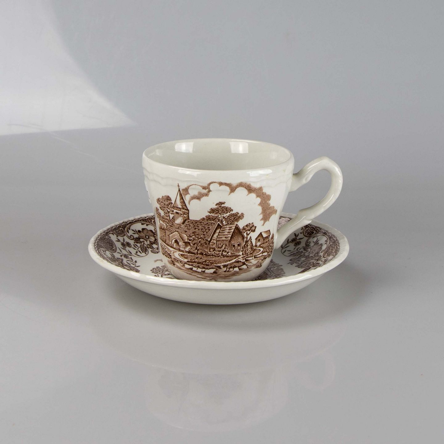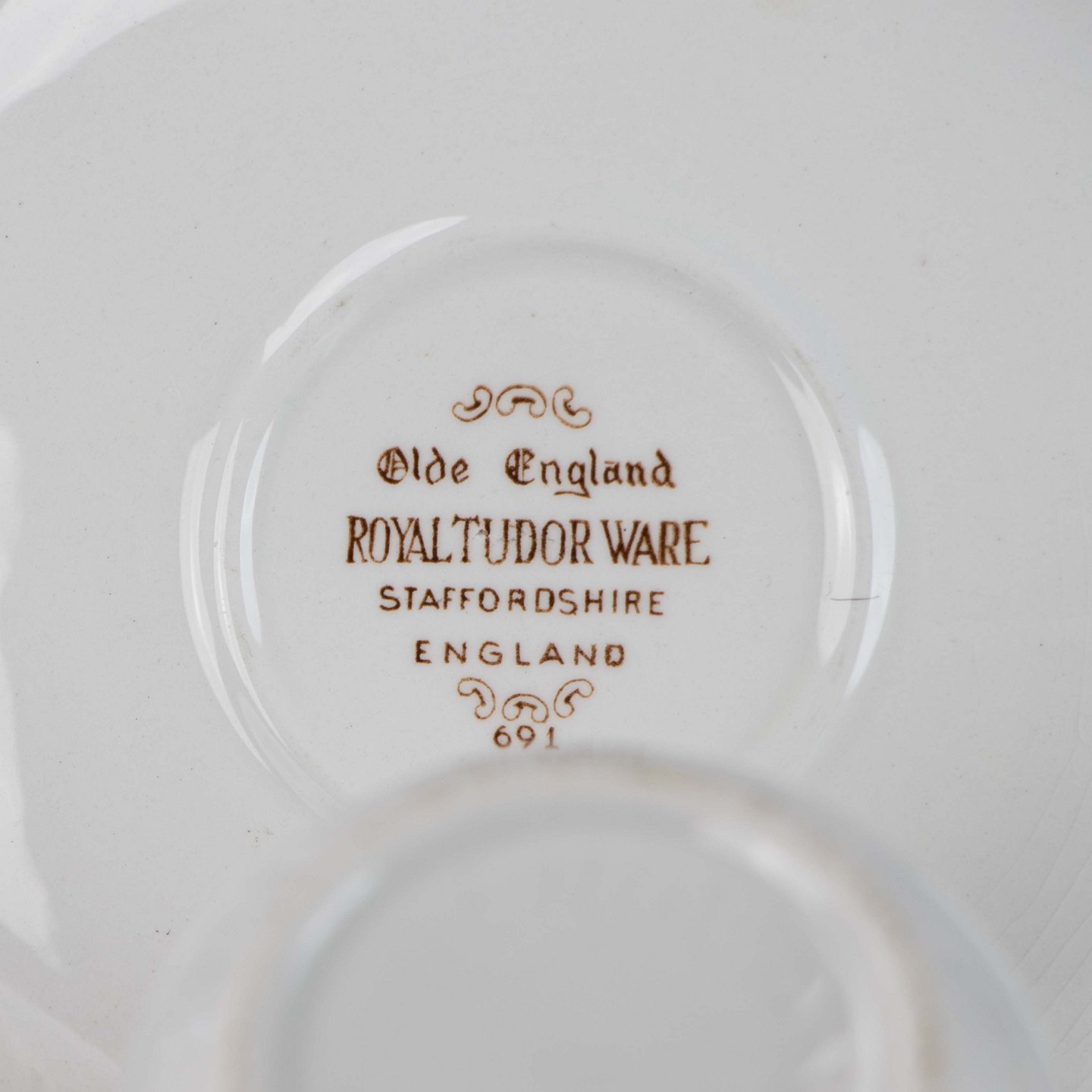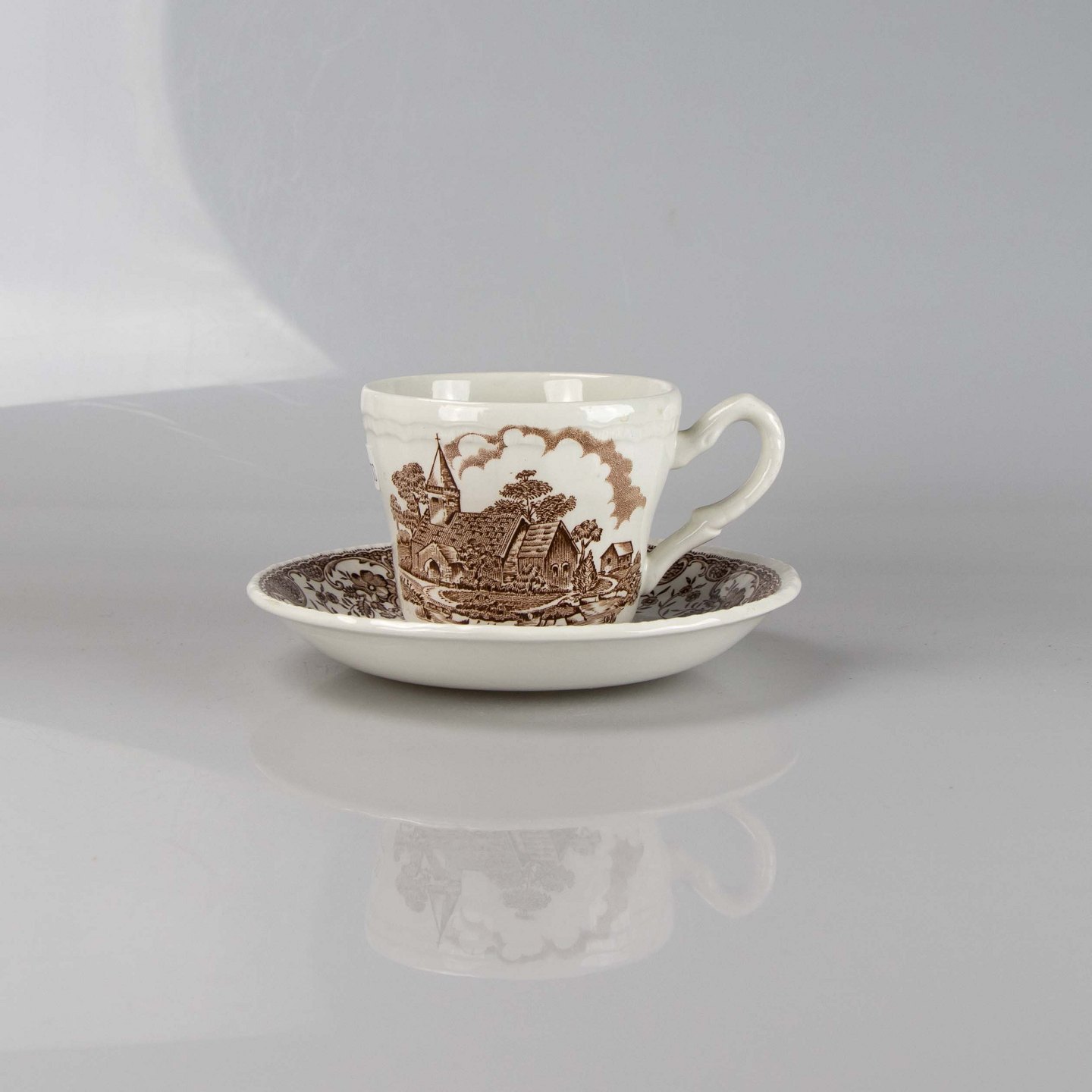 Kop med underkop i engelsk fajance fra stellet Olde England, Royal Tudor Ware nr. 691