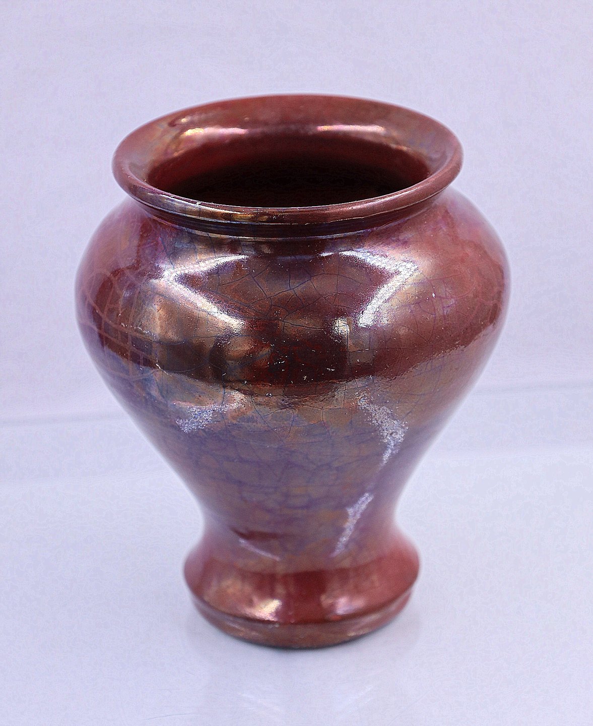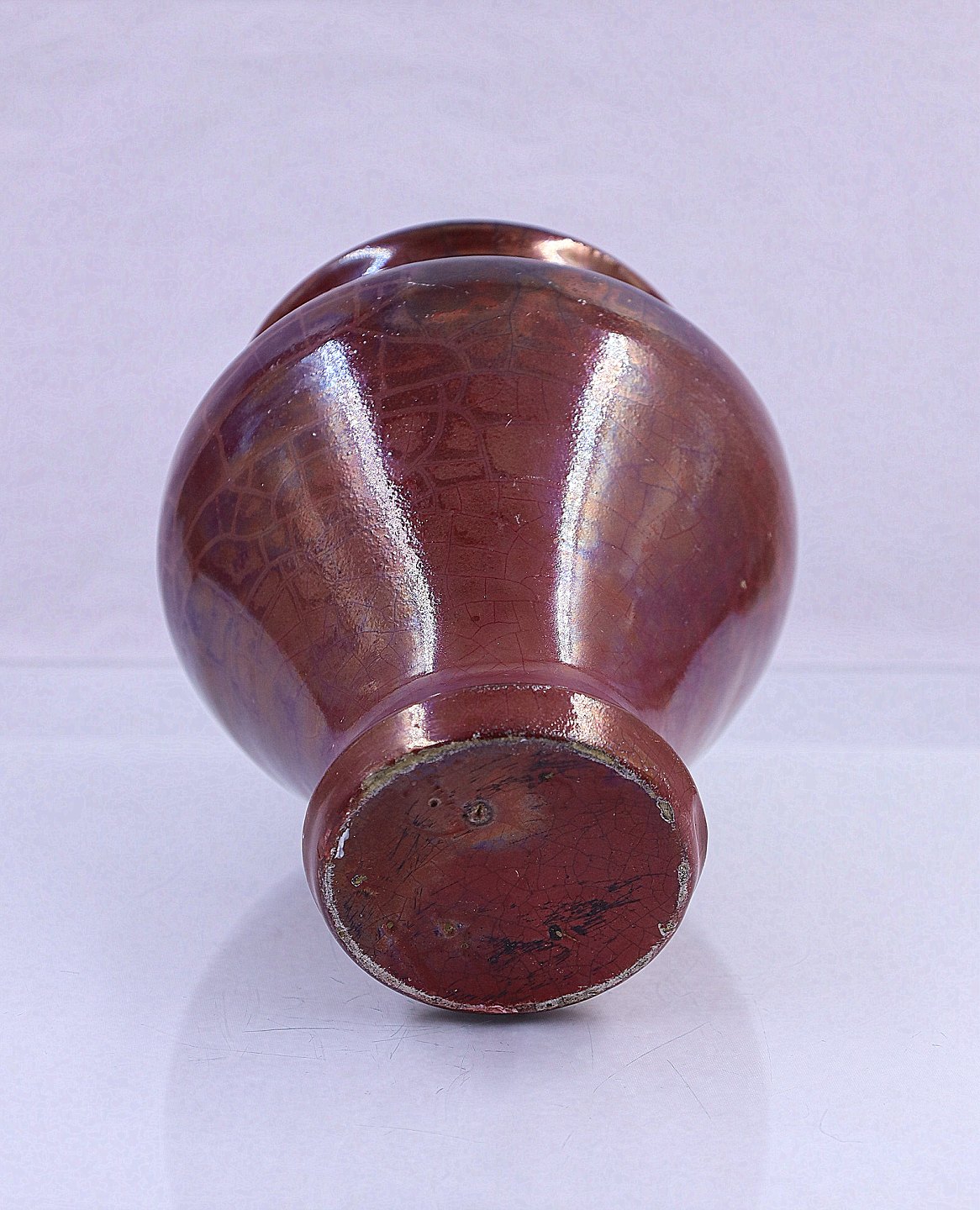 Kähler vase. Vasen er med krakele glasur og farven er okseblodsrød. Vasen er i facon som amfibervaser.