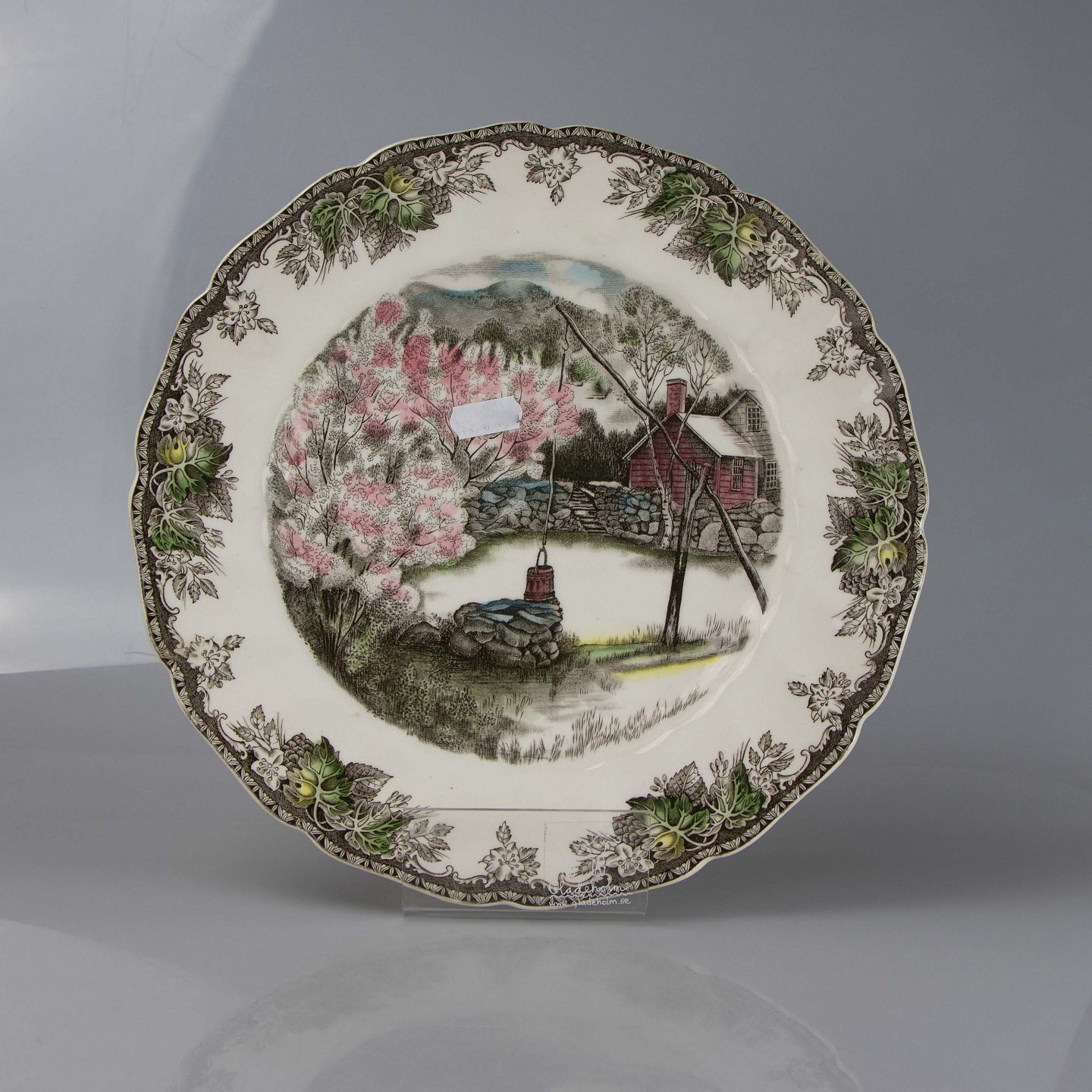 Stor middagstallerken i engelsk fajance fra stellet The Friendly Village